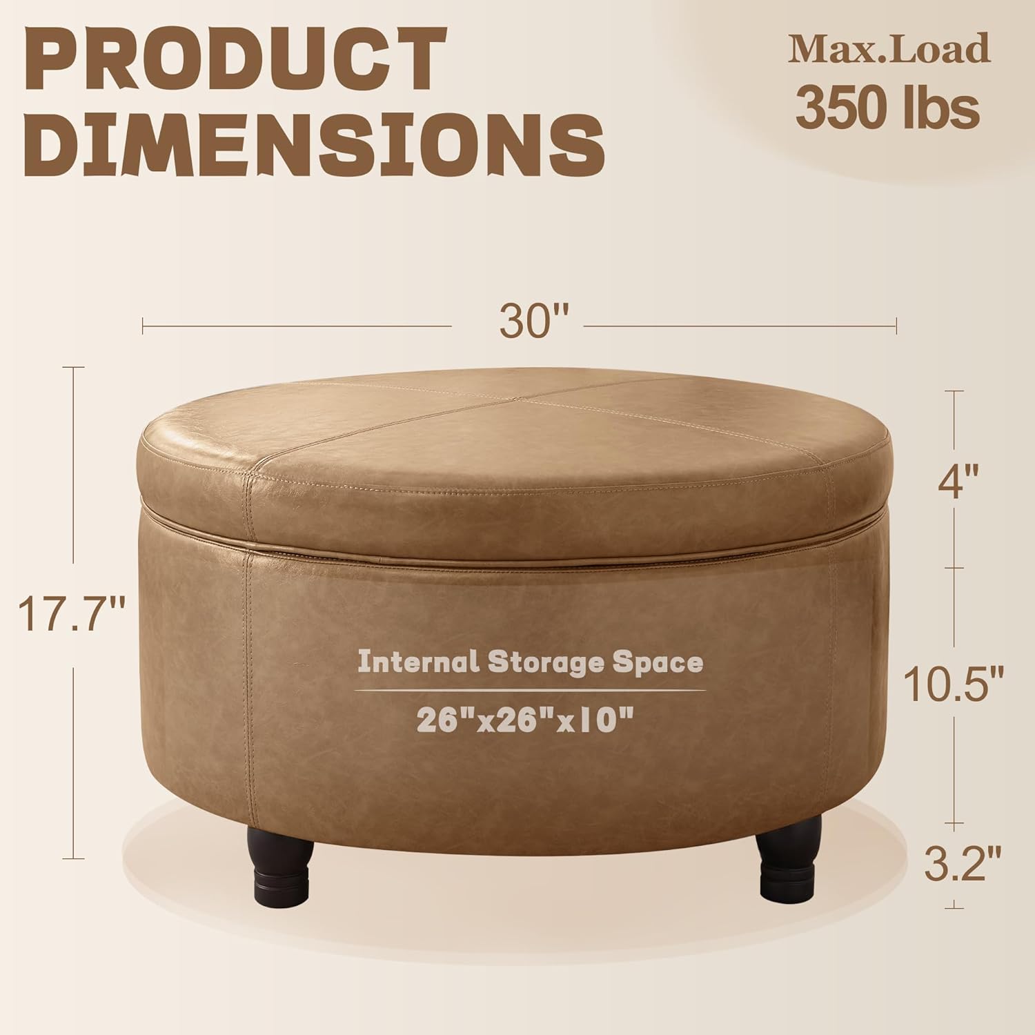 - High Quality: Our leather ottoman features a solid wood frame that guarantees strength and stability of the product. The lid of this round storage ottoman also has a built-in buckle to keep the lid firmly in place. Each solid wood leg has an anti-slip pad to prevent scratches caused by friction between the legs and the floor