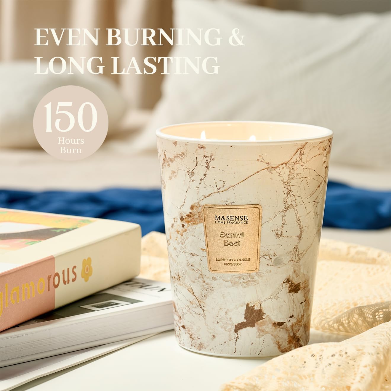 M&SENSE Santal Scented Candles for Home, 3-Wick Highly Scented Jar Candles, Extra Large Candle 35 Oz 150 Hours Long Lasting Burning, Relaxing Aromatherapy Candle for Stress Relief, Meditation