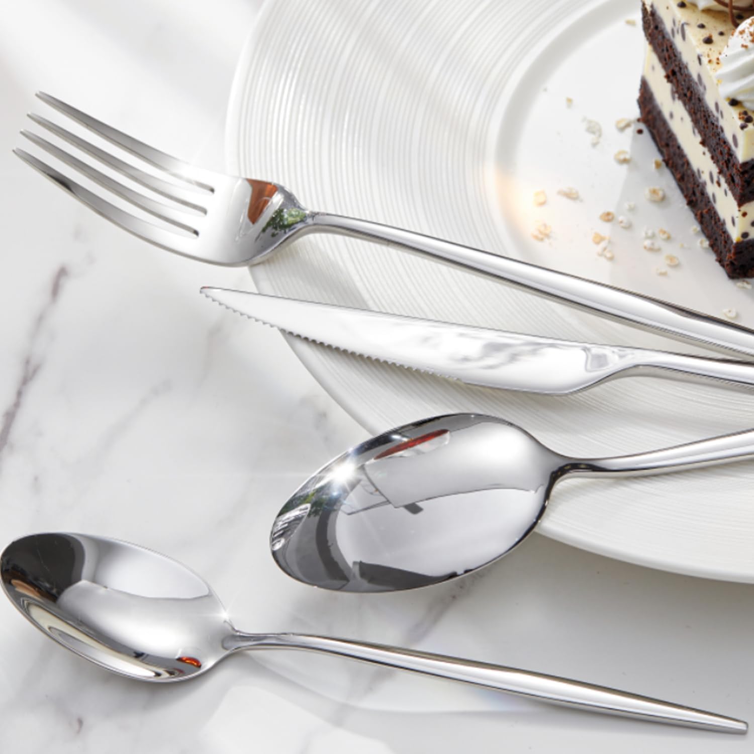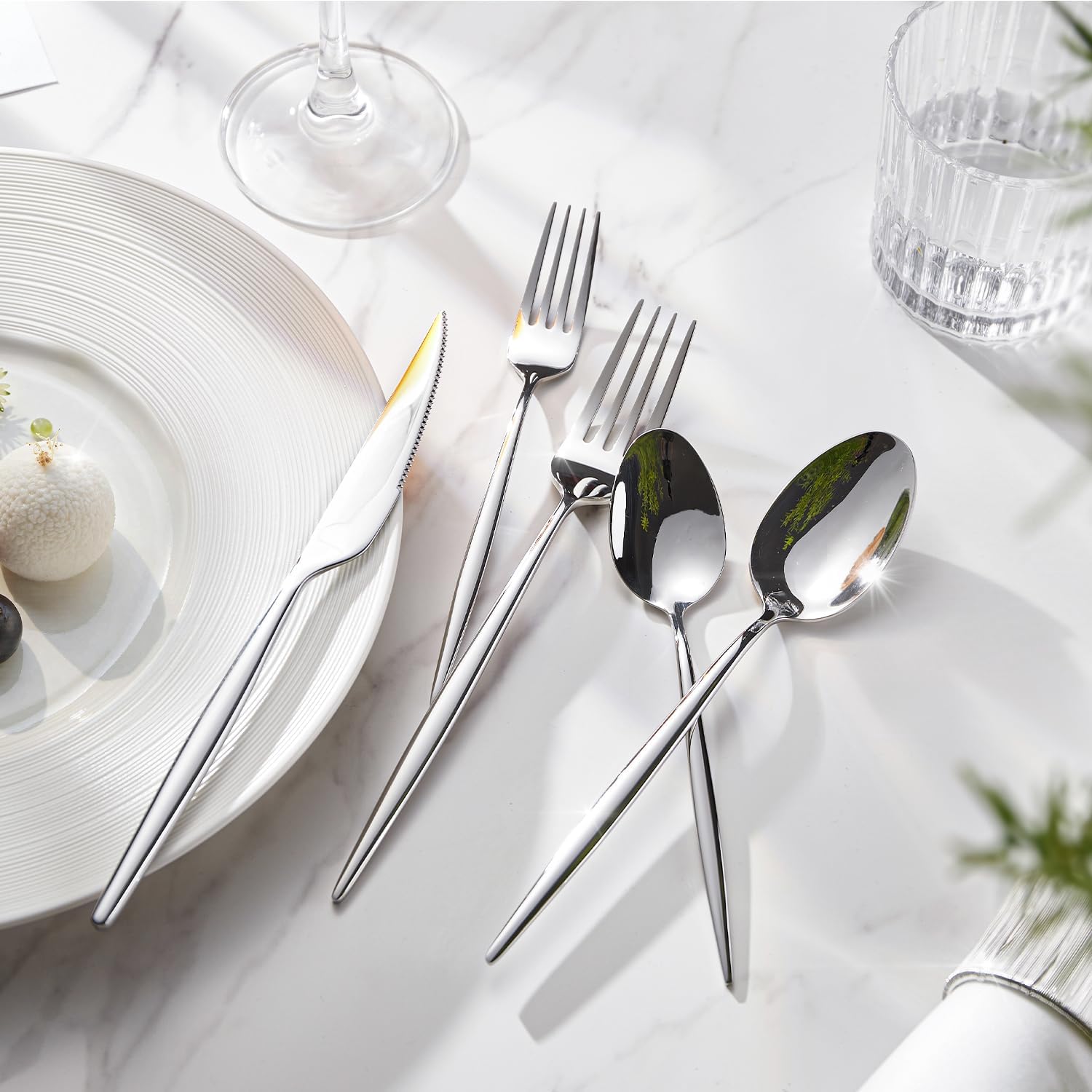 - Complete Set for Every Occasion: This shiny silver flatware set is perfect for Thanksgiving Day, Mother's Day, Housewarming, Wedding, Restaurant, Hotel or Daily Use. Simple classic modern design would match well with your existing cutlery and elevate everyday meals into a fine dining experience.