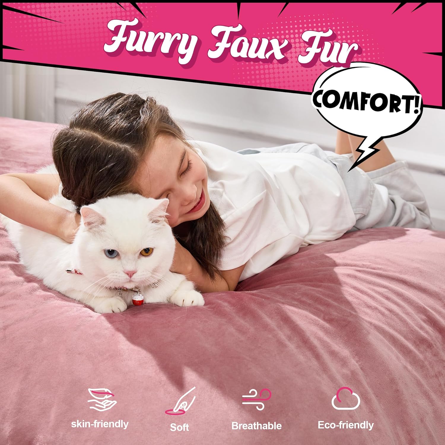 Hobestluk 3 in 1 Bean Bag Chair Giant Bean Bag Chairs for Adults with Velvet Cover Convertible Bean Bag Floor Cushion with Machine Washable Cover for Living Room (Velvet Pink)