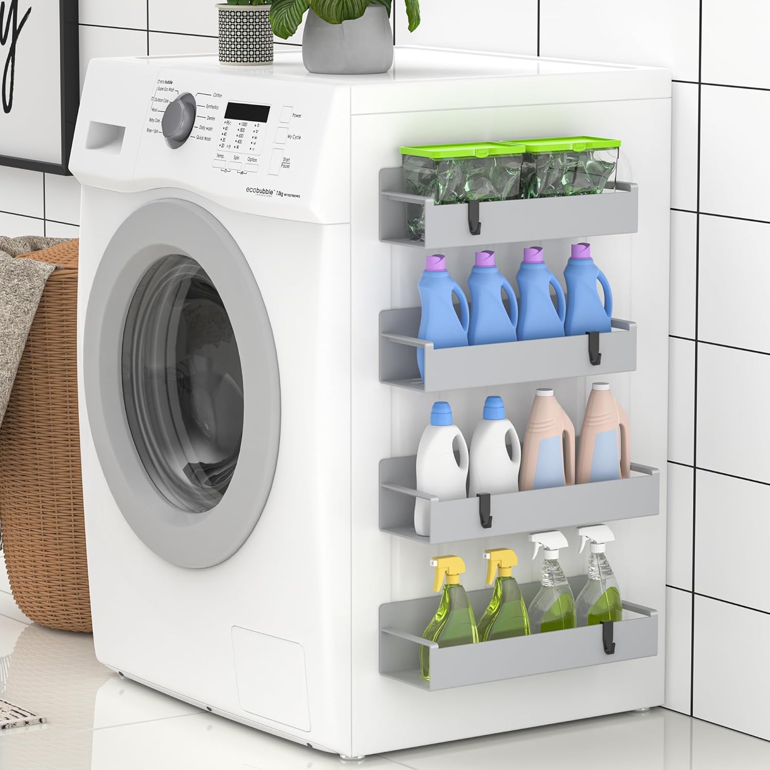 4 Pack Magnetic Spice Rack Organizer for Refrigerator and Oven, Light Gray Fridge Organizers and Storage for Kitchen