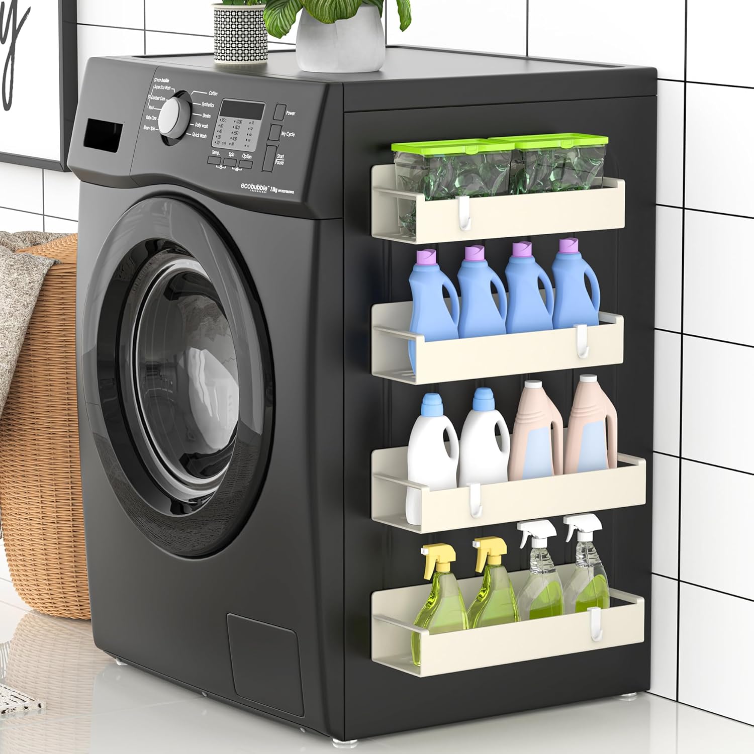 4 Pack Magnetic Spice Rack Organizer for Refrigerator and Oven, Cream White Fridge Organizers and Storage for Kitchen