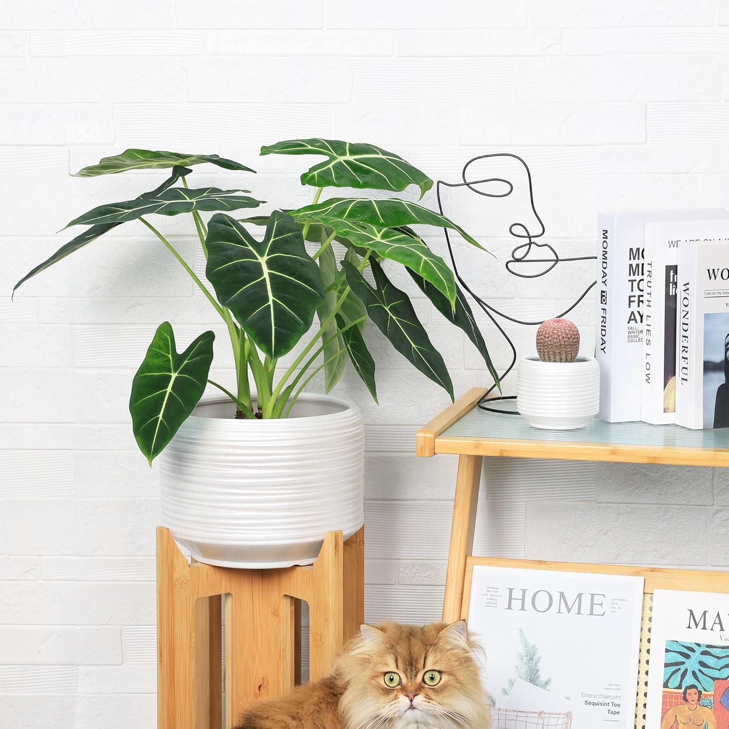 - 【Fits Medium to Large Houseplants】:10 inch diameter accommodates various plants such as fiddle leaf figs, snake plants, peace lilies, or monstera. A great ceramic plant pot for large indoor plants or balcony garden pots.