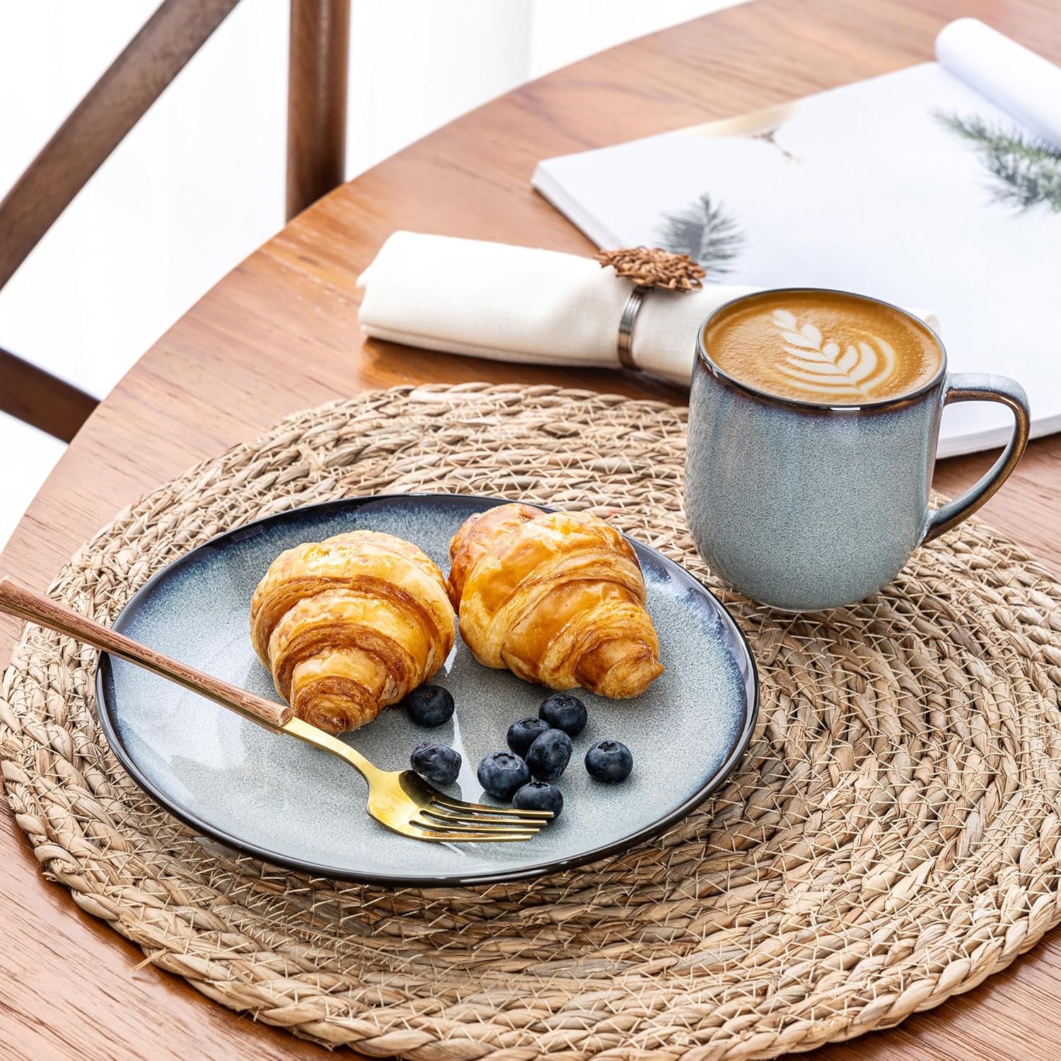 - 【UNIQUE AND SCRATCH RESISTANT】Our plates are fired with two different glazes,The reactive glaze make every plate is unique,Since our glaze is all-natural reactive finish, the surface of plates would change color on lighting,So Our glaze is also extra strong to prevent scratches from your knives and forks.
