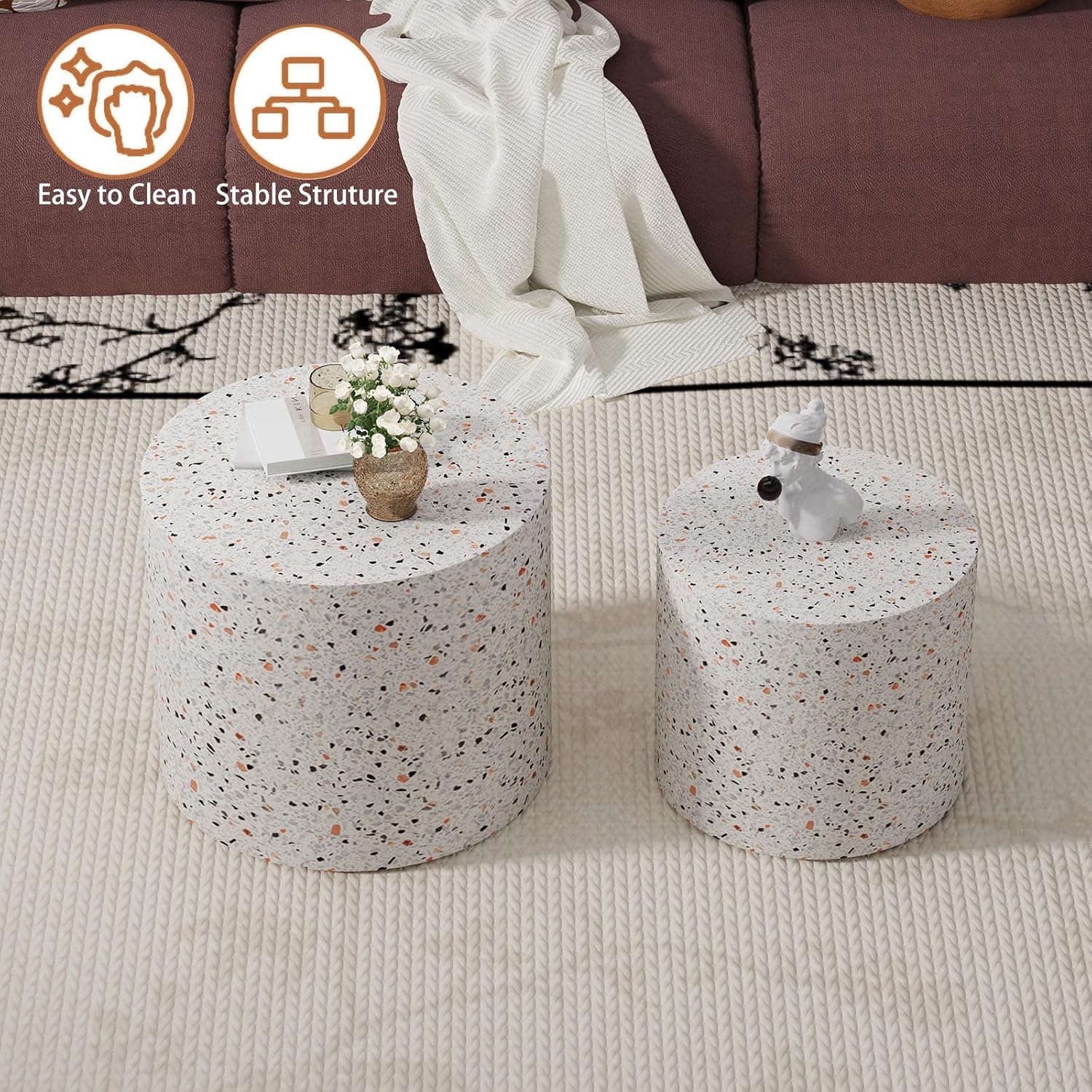 Terrazzo Round Nesting Coffee Tables 2 Piece Set - Contemporary Design, Sturdy Build, Multifunctional for Living Room, Office, and Balcony Use (Terrazzo 18.1in)