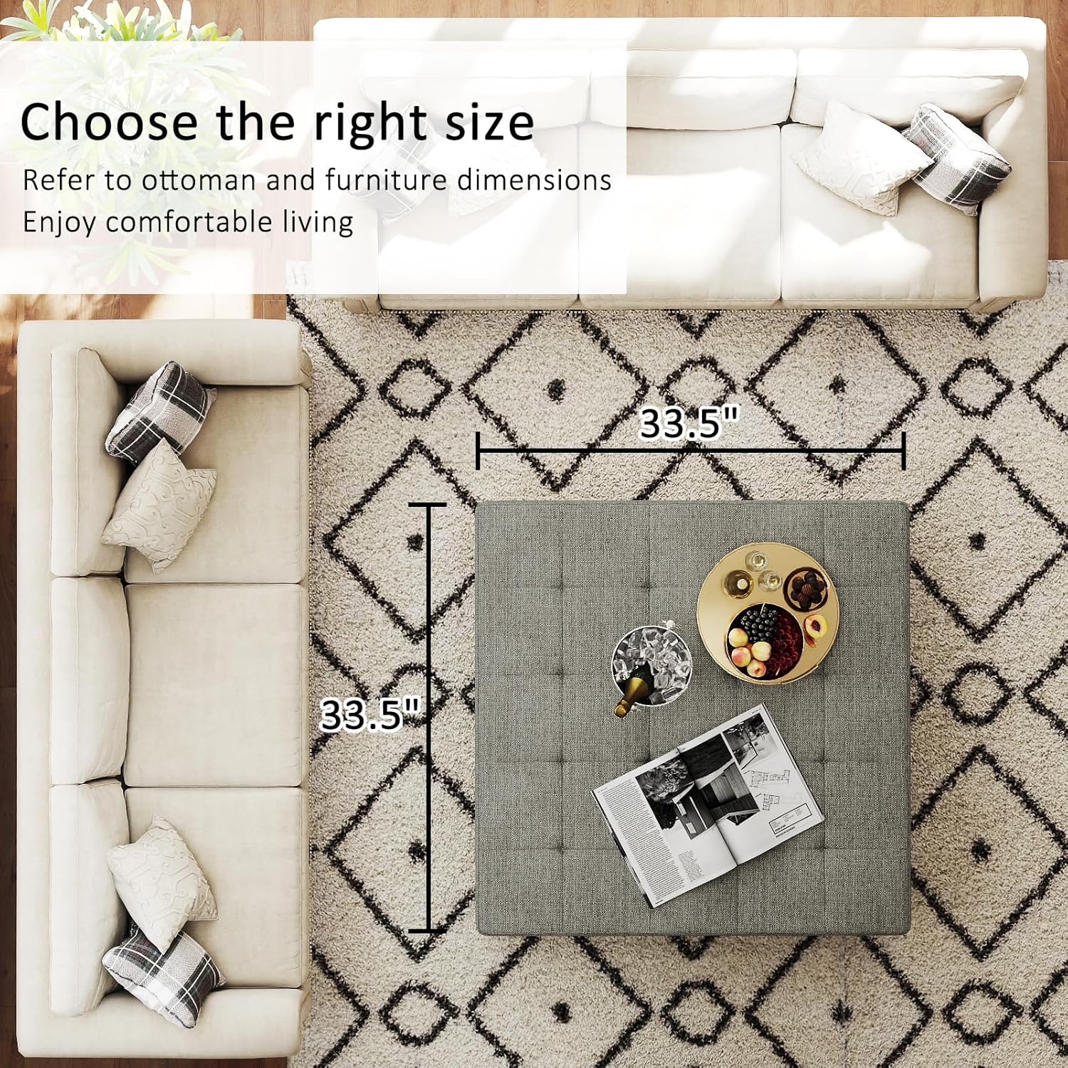 - Ottoman Coffee Table Size:33.5" Wx33.5" Dx18.5" H. Easy to bear 400 pounds