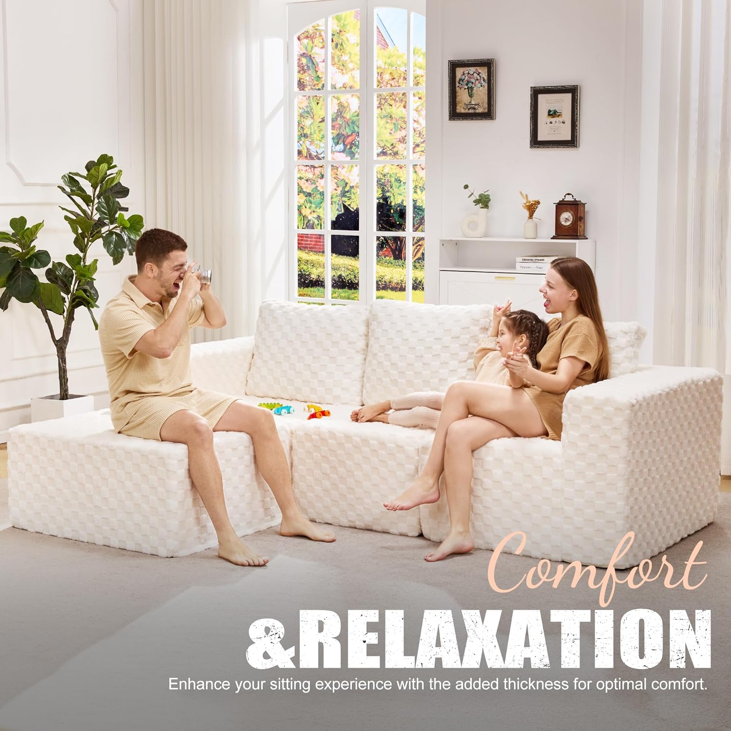 Hobestluk Modular Sectional Sofa Memory Foam Couch Oversized Sectional Sofa 3-Seater with Chaise Cloud Couch with Removable Cover L Shape Sofa for Living Room (Plush White, 3-Seater with Chaise)