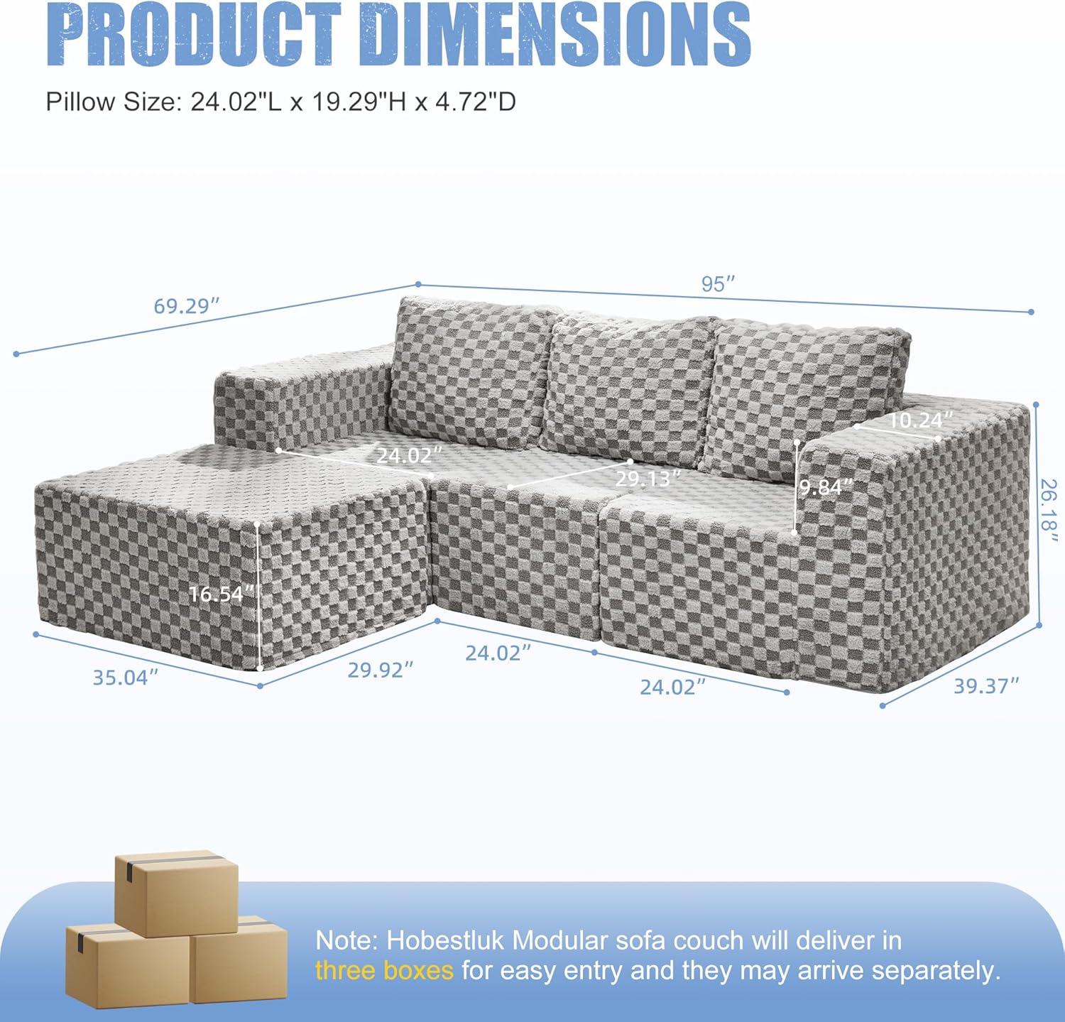 - Product Dimensions : 69.29"D x 95"W x 26.18"H