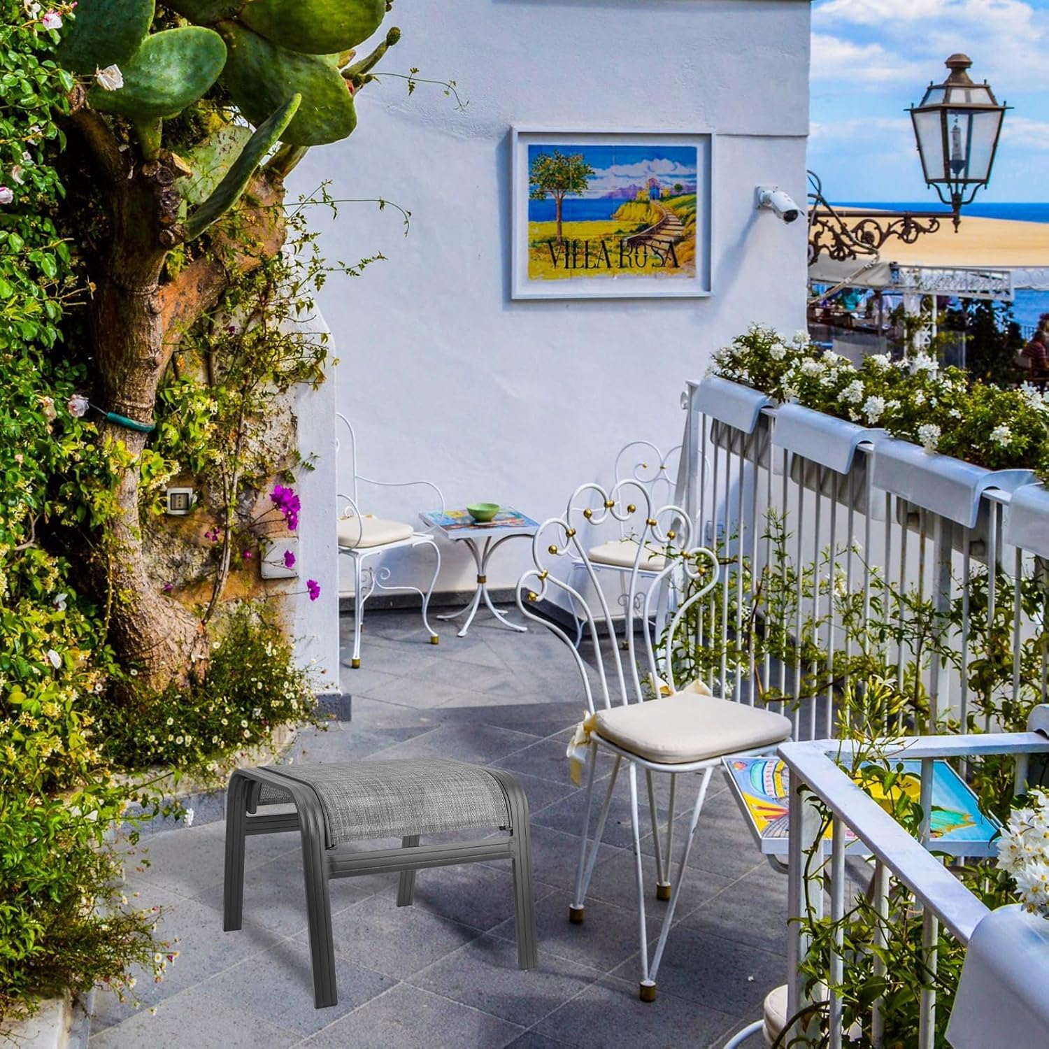 Outdoor Patio Ottoman Seat Textilene Portable Metal Footstool Portable Footrest Patio Chairs 2 Set New Grey