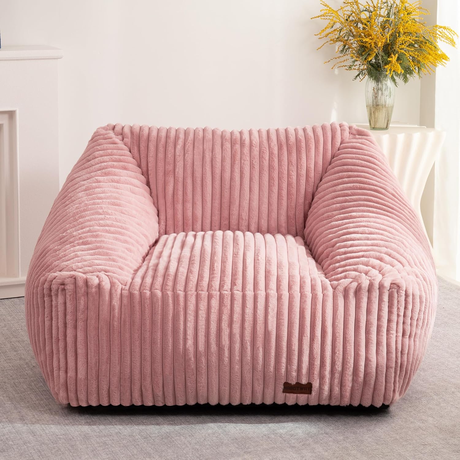 HABUTWAY Bean Bag Chair, Giant Bean Bag Chairs for Adults and Kids, Bean Bag Sofa, Lazy Floor Sofa, Faux Fur Beanbag Chair with Armrests for Living Room Bedroom (Pink)