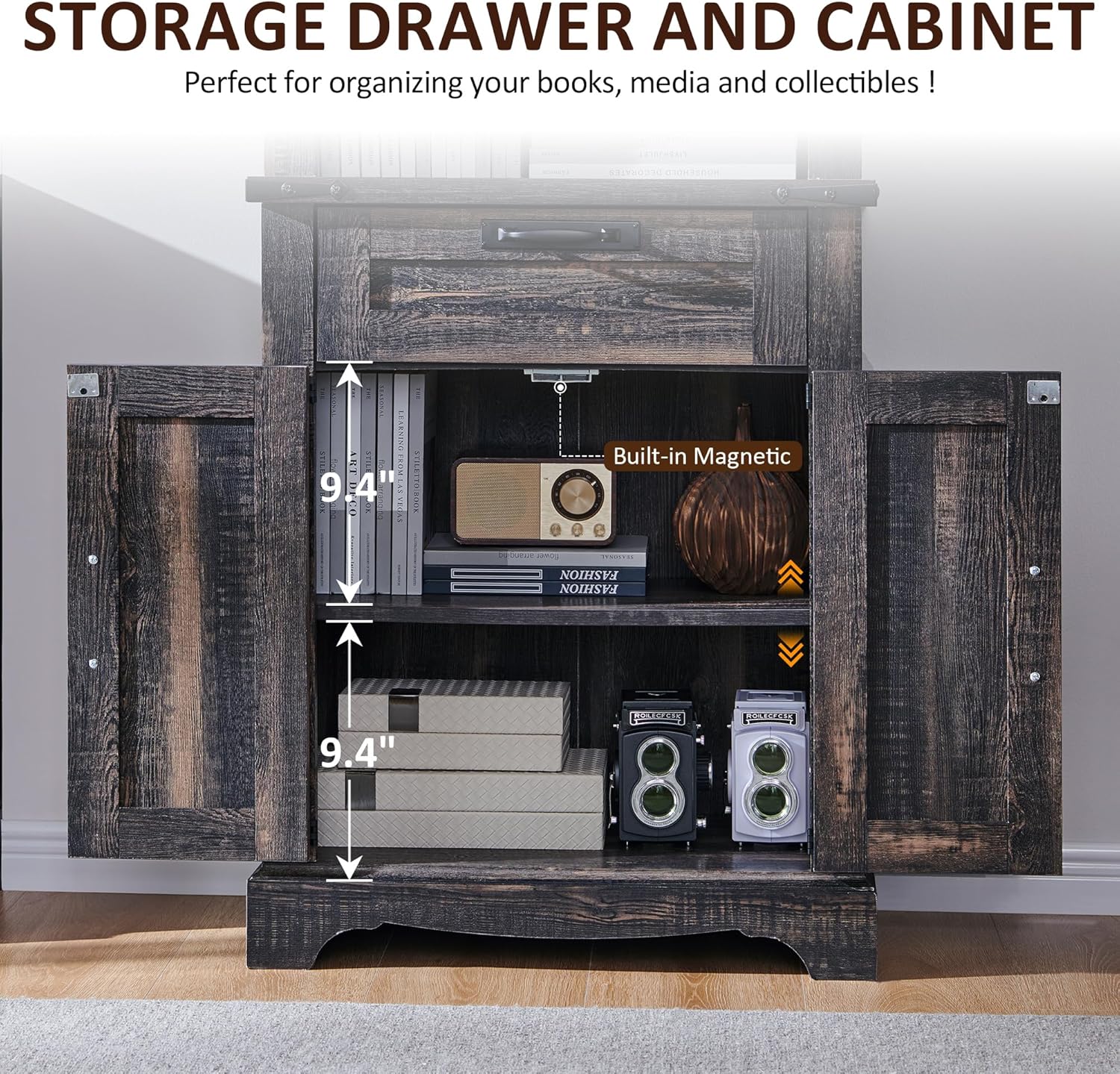 - Large Storage Space: This bookcase with drawer feature with 5 spacious adjustable shelves , 1 drawers and a colsed cabinet with barn door design, providing ample storage for all your books and decor items. Dimensions: 71.4"H x 23.6"W x 11.8"D. Whether in your living room, bedroom, or home office, this white bookshelf with a versatile storage cabinet is the perfect addition to your space