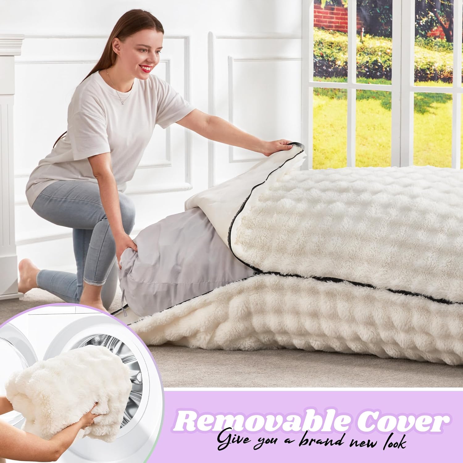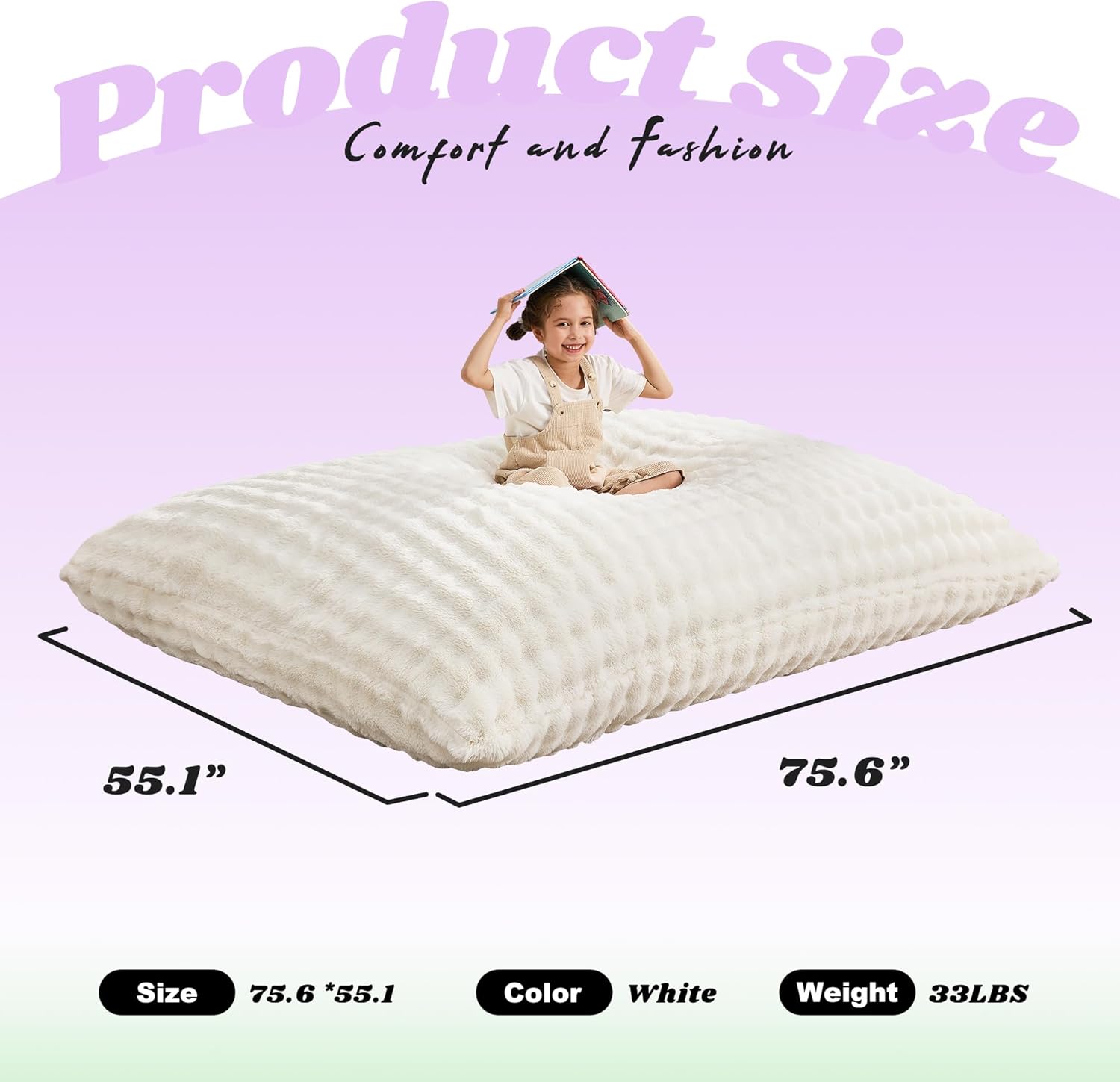 Hobestluk 3 in 1 Bean Bag Chair Giant Bean Bag Chairs for Adults with Bubble Cover Convertible Bean Bag Floor Cushion with Machine Washable Cover for Living Room (Bubble White)