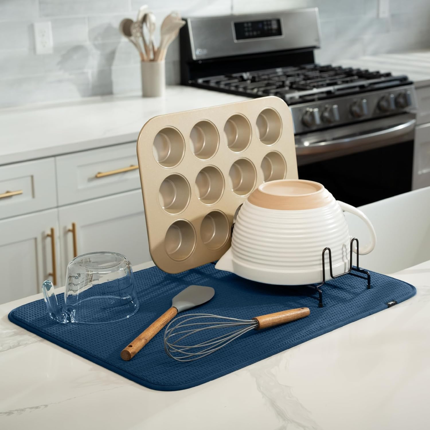 S&T INC. Dish Drying Mat XL, 18” x 24”, Absorbent Microfiber Kitchen Counter Mat, Dish Drying Pad for Dishes, Utensils, Pots and Pans, Extra Large, Navy