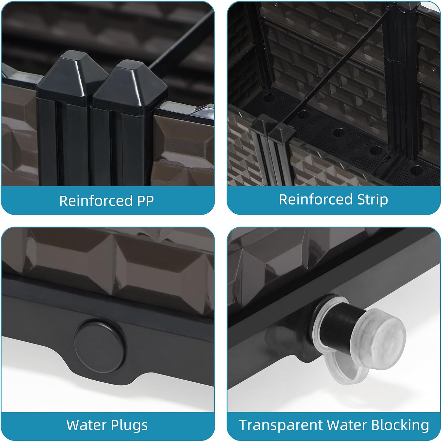 - Strengthened PP Material - Made of quality pp material, our raised garden bed is eco-friendly, weather resistant and sturdy enough to hold the weight of soil and plant.