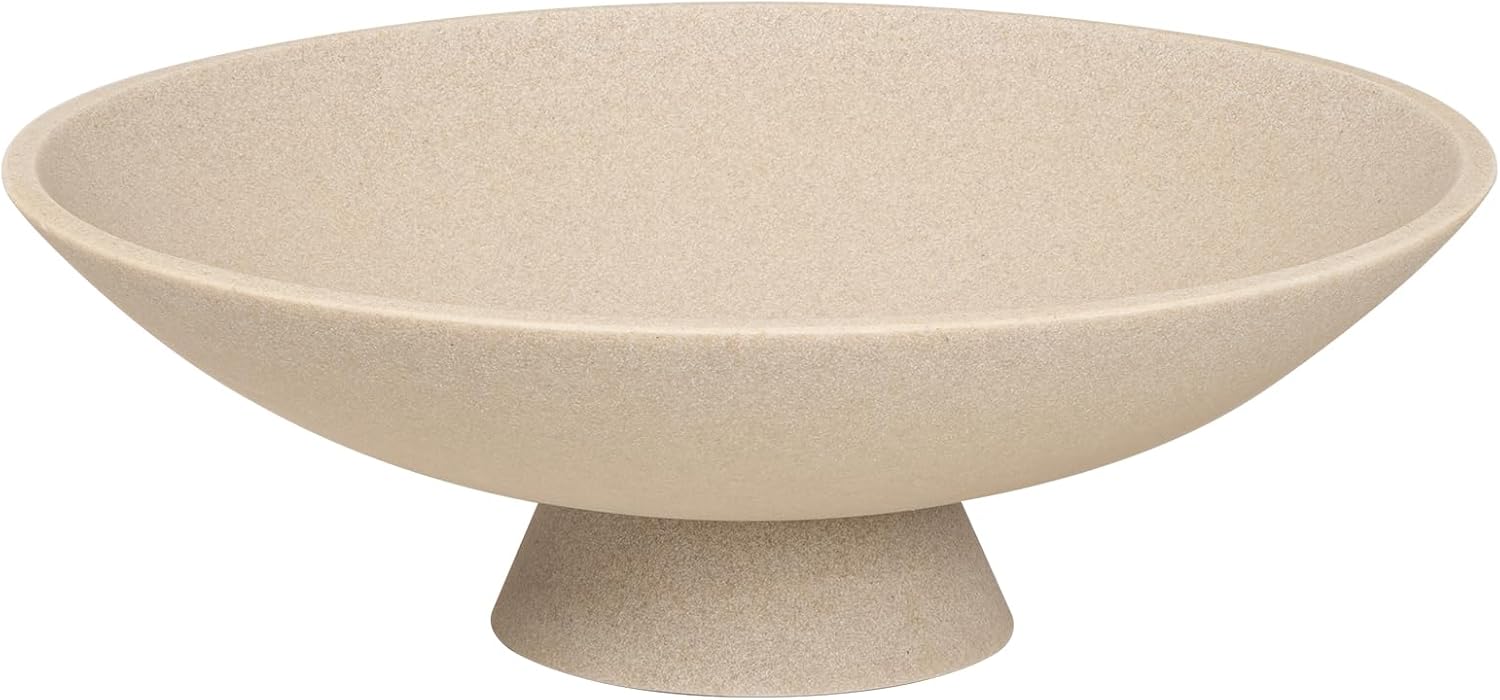 Decorative fruit bowl for Home Decor Large Modern Handicraft Key Bowl for Entryway Table Stylish Centerpiece Purse Bowl Pedestal bowl for Kitchen Counter Coffee Table(Artificial Stone Beige)