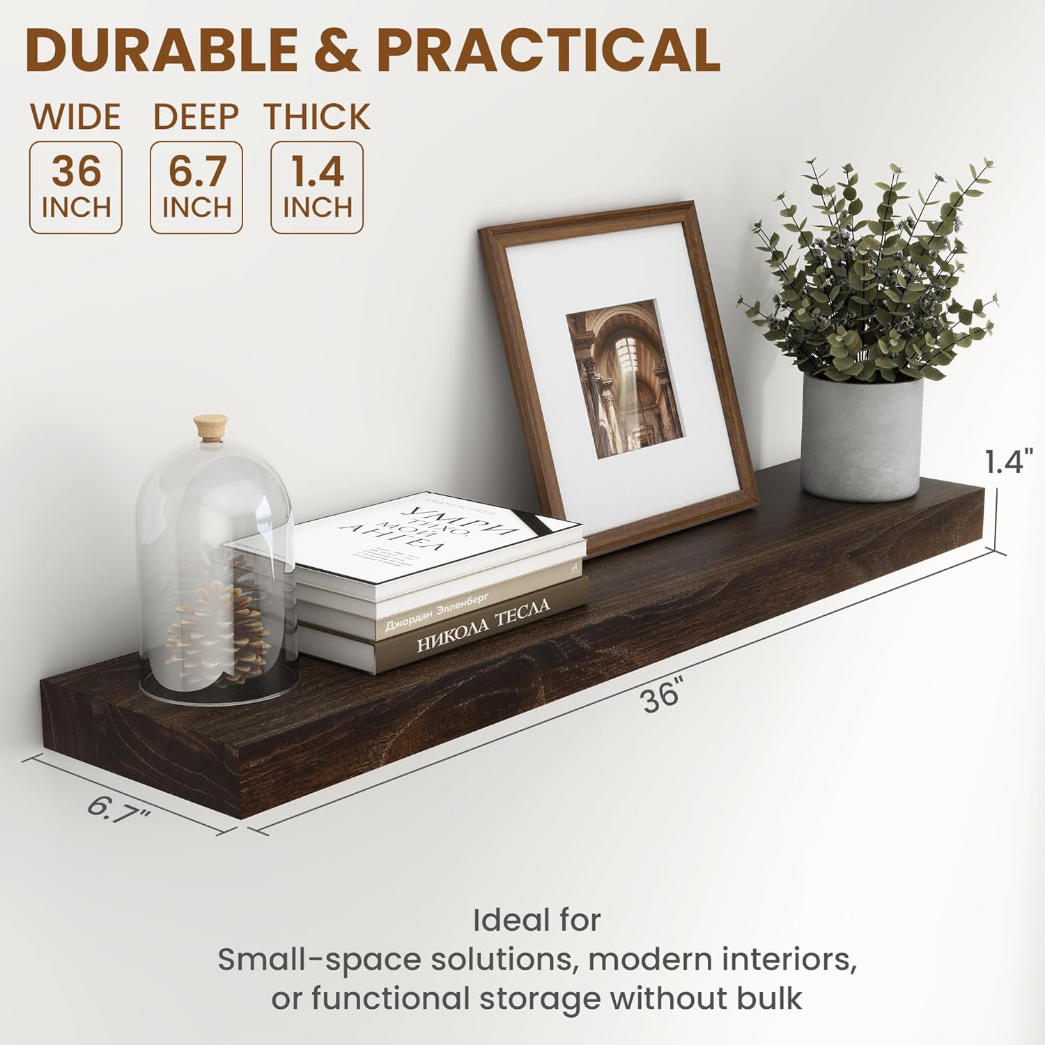 - EASY& SECURE INSTALLATION: Includes pre-drilled holes, mounting hardware, and clear instructions for hassle-free wall-mounting, ensuring a sturdy floating shelf setup.
