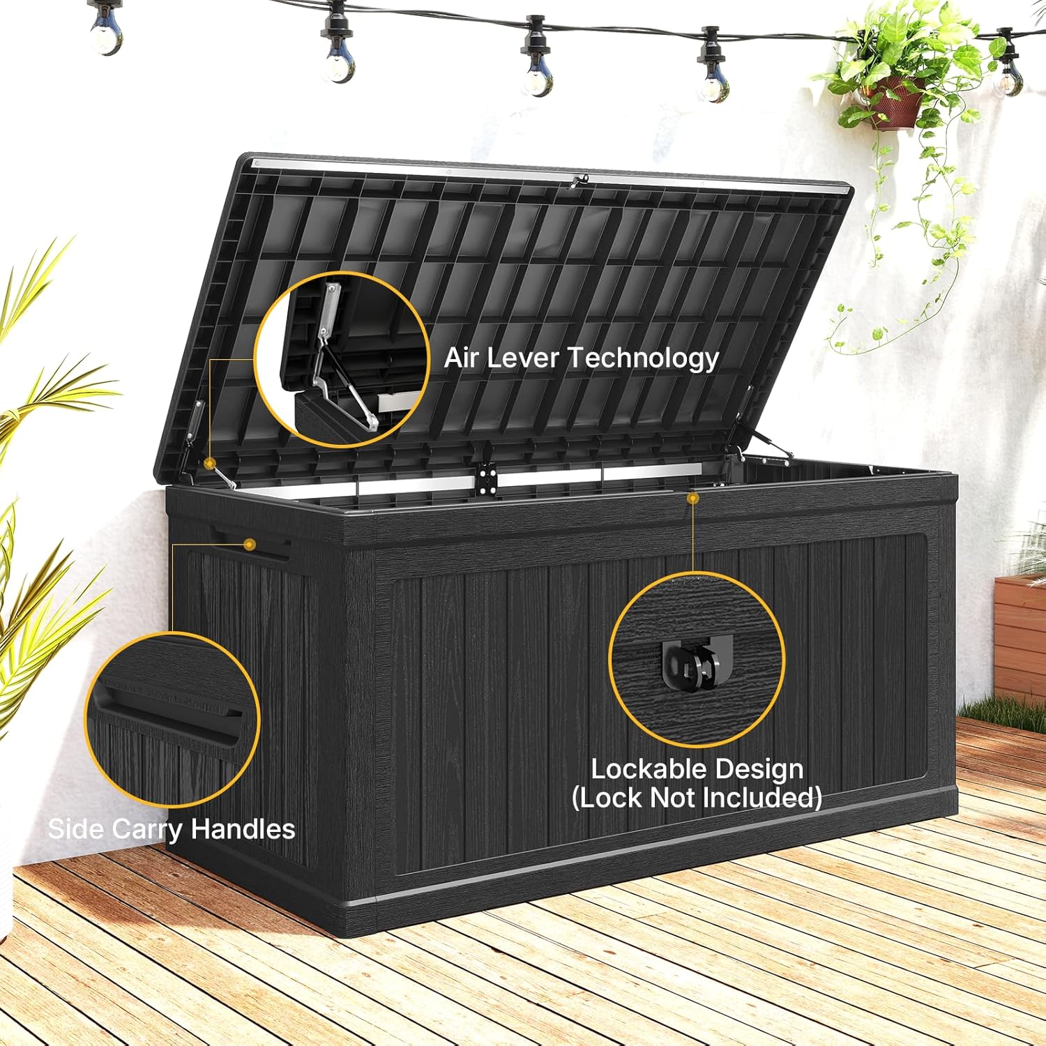 260 Gallon Deck Box Lockable, Outdoor Storage Box Waterproof and UV Resistant, Large Patio Storage Box with 1000 lbs Capacity, for Garden, Patio Furniture, Pool (Black)