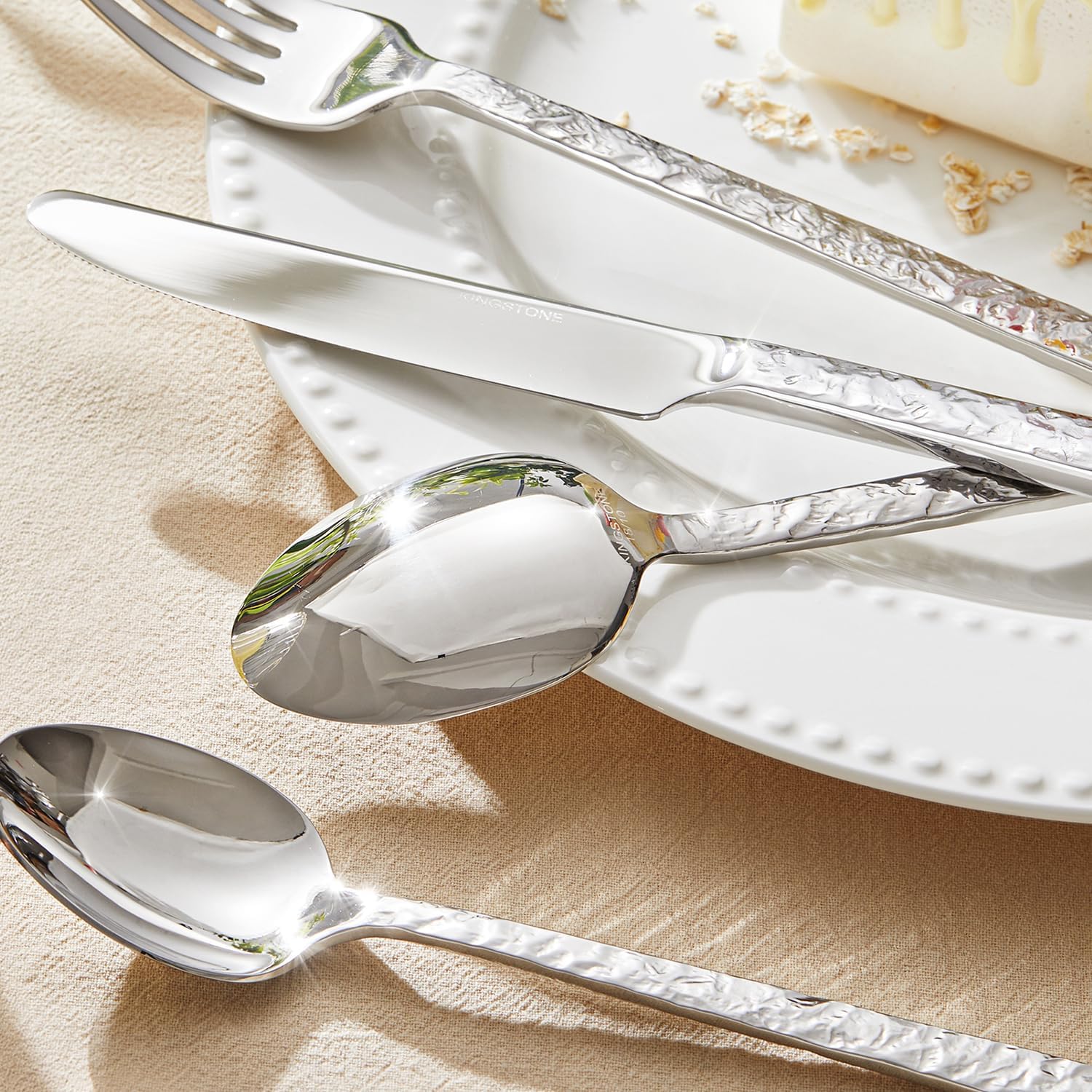 KINGSTONE 20 Pcs Hammered Silverware Set for 4, 18/10 Stainless Steel Heavy Duty Flatware Set, Tableware Cutlery Utensil Sets for Home Restaurant Dishwasher Safe