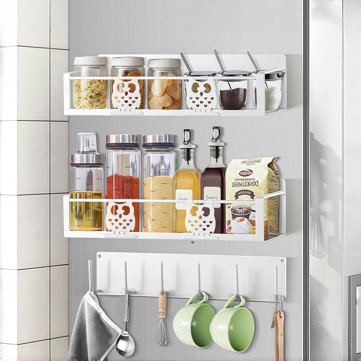 Magnetic Spice Rack,Magnetic Shelf for Fridge,Spice Organizer,Fridge Organizer,Kitchen Storage Organization with Magnetic Hooks,Owl Home Decor(White)