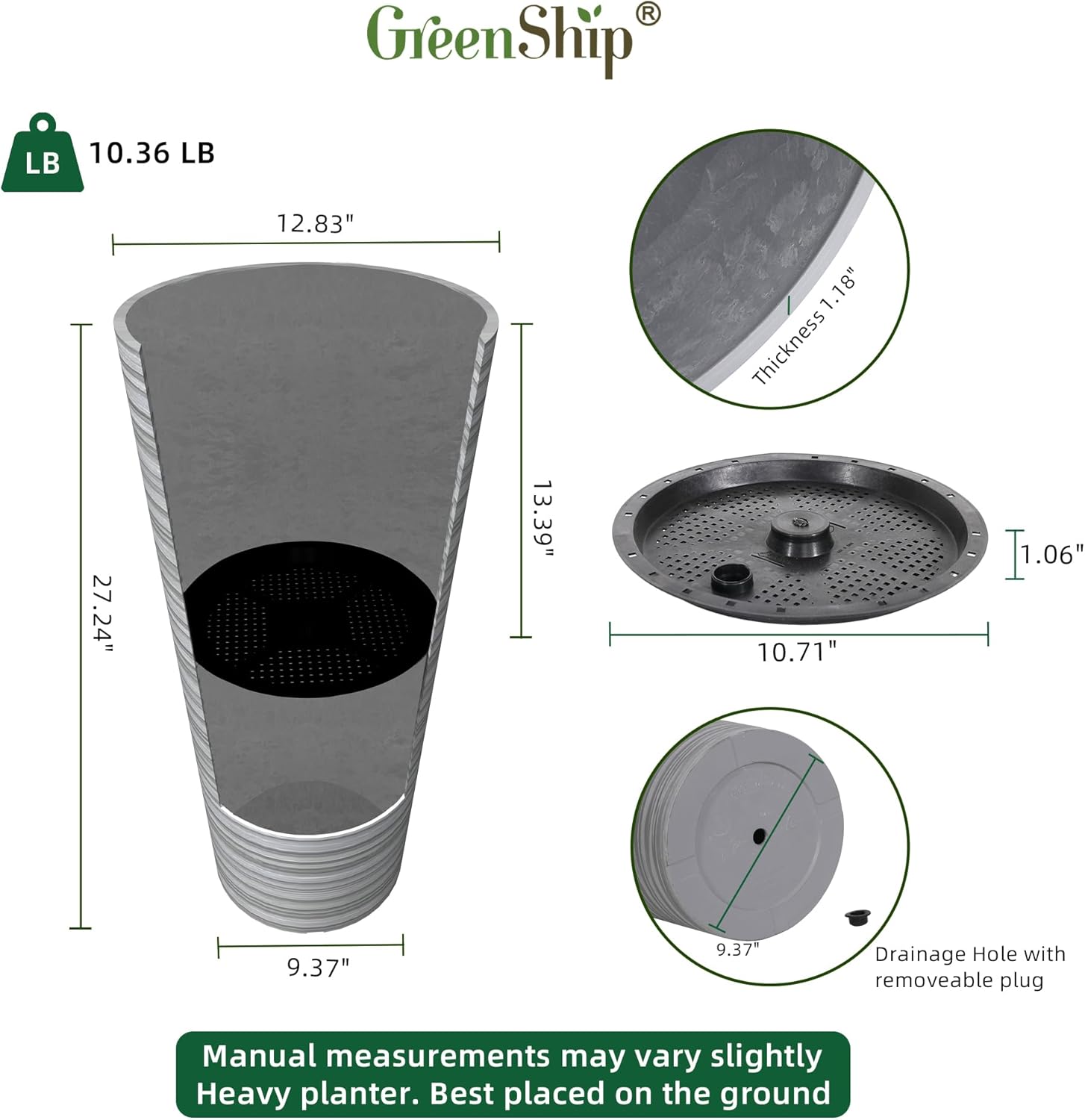 - Efficient Drainage System – Comes with a built-in drainage hole and removable rubber plug, allowing for proper water flow to prevent overwatering while offering flexible planting options.