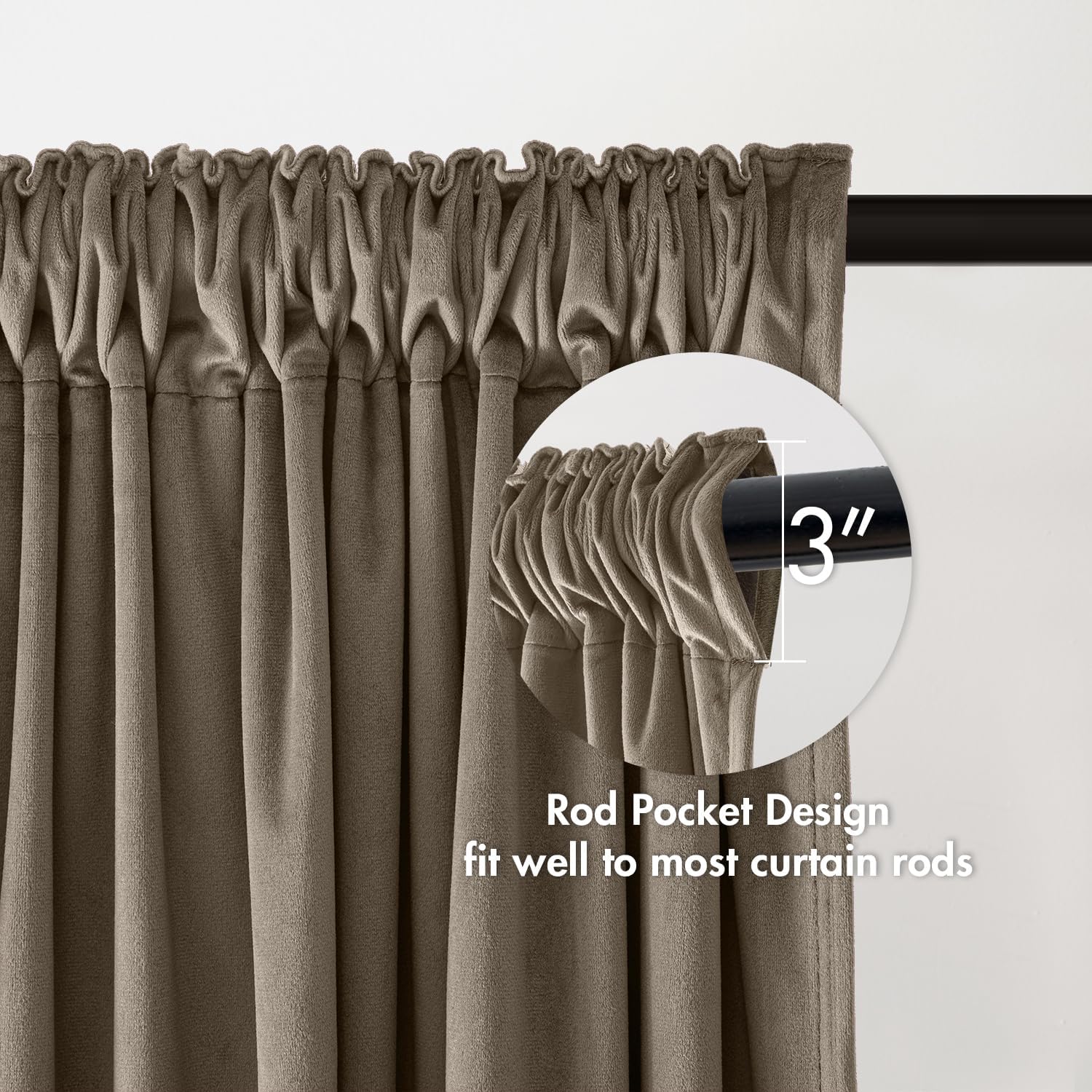 - FUNCTION: Thick and heavy blackout curtain drapes can block 60-70% of the sunlight (the darker color works better).These velvet curtains can also reduce noise,stay temperature down in summers,keep cold wind out in winters to achieve smart energy saving and provide privacy as well.