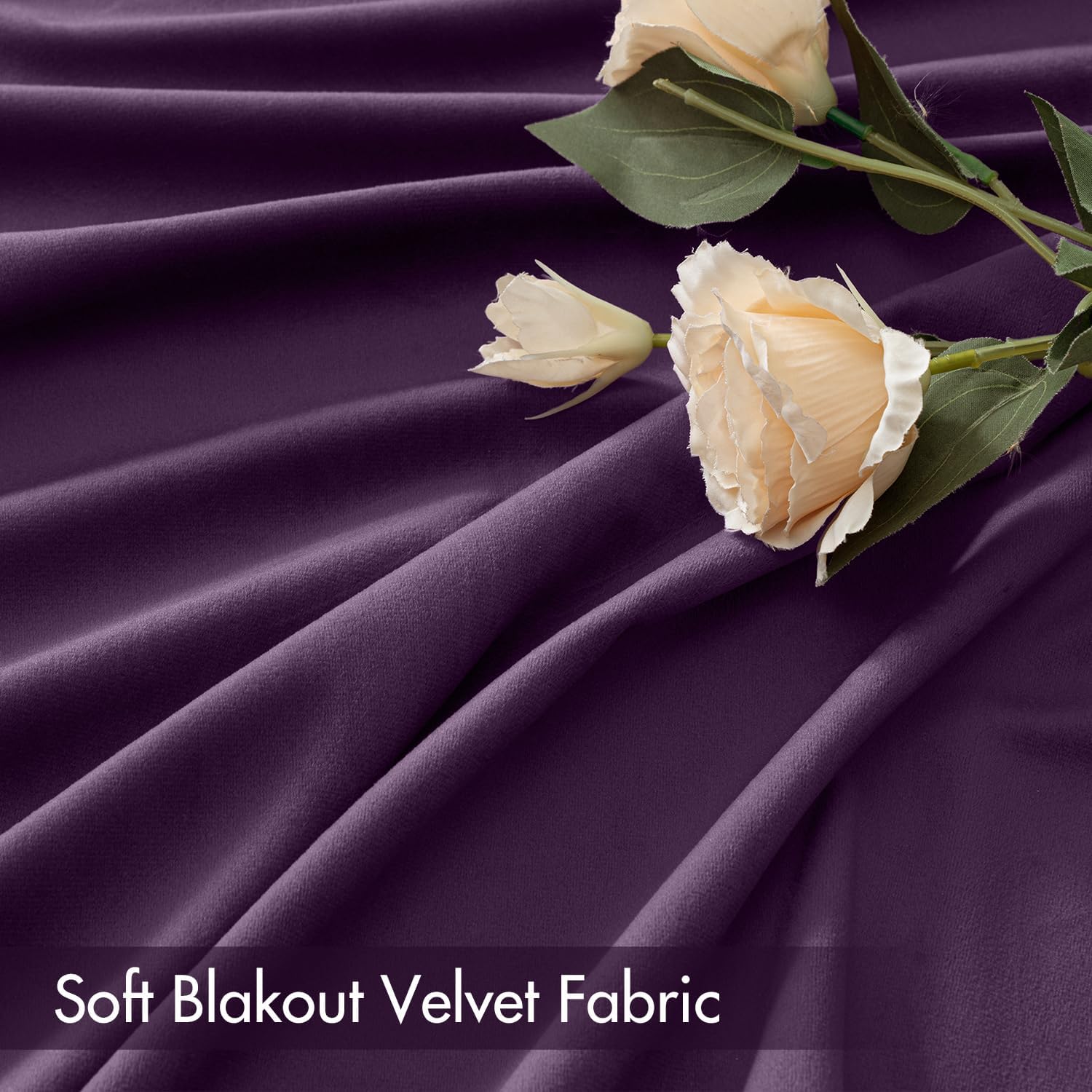 MIULEE Purple Velvet Curtains Thermal Insulated Blackout Curtain Drapes for Bedroom Living Room Darkening 90 Inches Long Curtains Panels Rod Pocket Set of 2