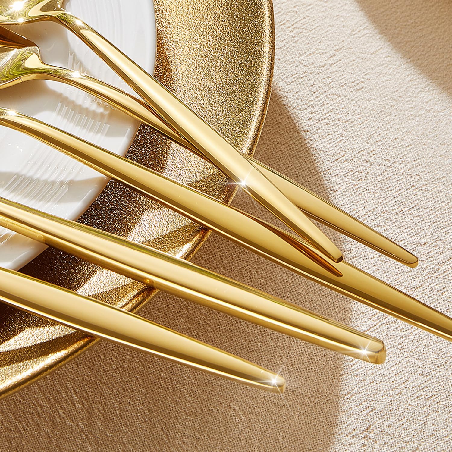 KINGSTONE Silverware Set, 60-Piece Flatware Set Cutlery Set Premium 18/10 Stainless Steel, Tableware Include Forks Knives Spoons for Home Kitchen Restaurant Wedding, Dishwasher Safe,Gold