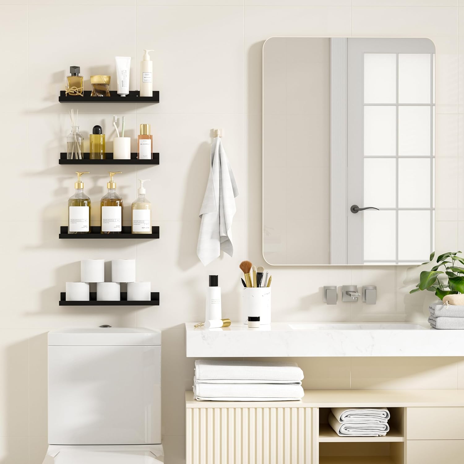 4 Pack Floating Shelves for Wall Storage, Metal Black Hanging Shelves for Living Room/Kitchen/Bedroom/Bathroom Decor, Set of 4 Organizer for Display, Perfume & Book Shelf Wall Mounted