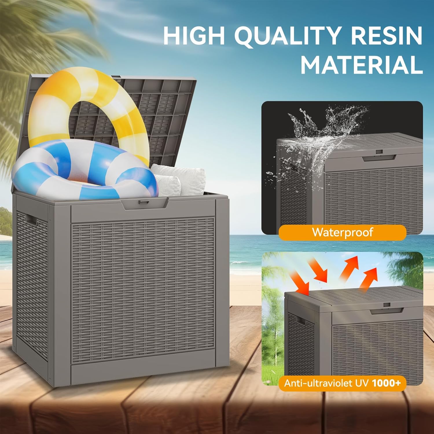 - Immense Storage Capacity: With dimensions of 22.1in x 17.1in x 20.8in, this deck box offers perfect storage space for all your outdoor essentials. It can hold up to 31 gallons of garden tools, pool supplies, patio furniture, cushions, and more.