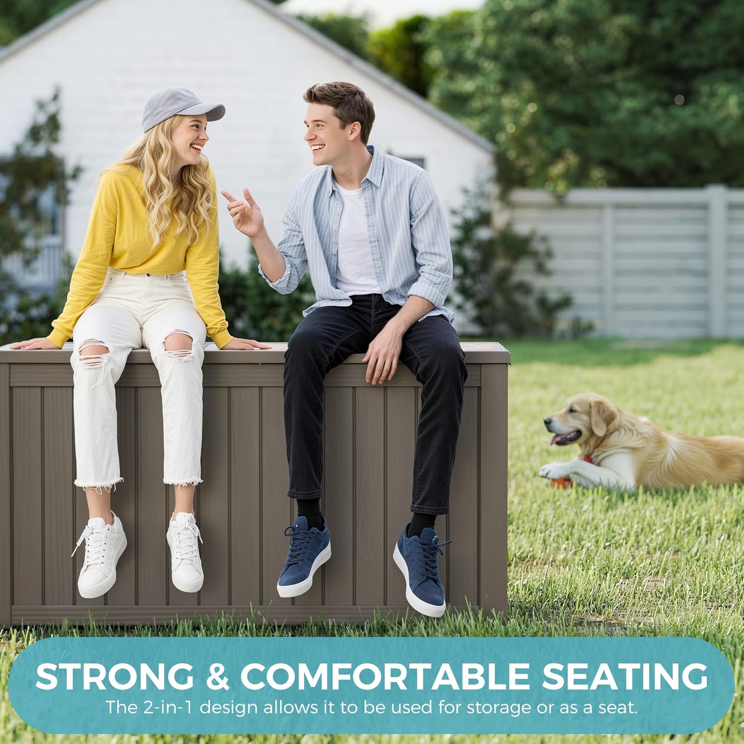 KAMABOKO Outdoor Storage Box, 150 Gallon Large Outdoor Resin Deck Box, Storage Waterproof Boxes Lockable Lid for Garden Tools, Pool Supplies, Patio Furniture and Cushions, Grey