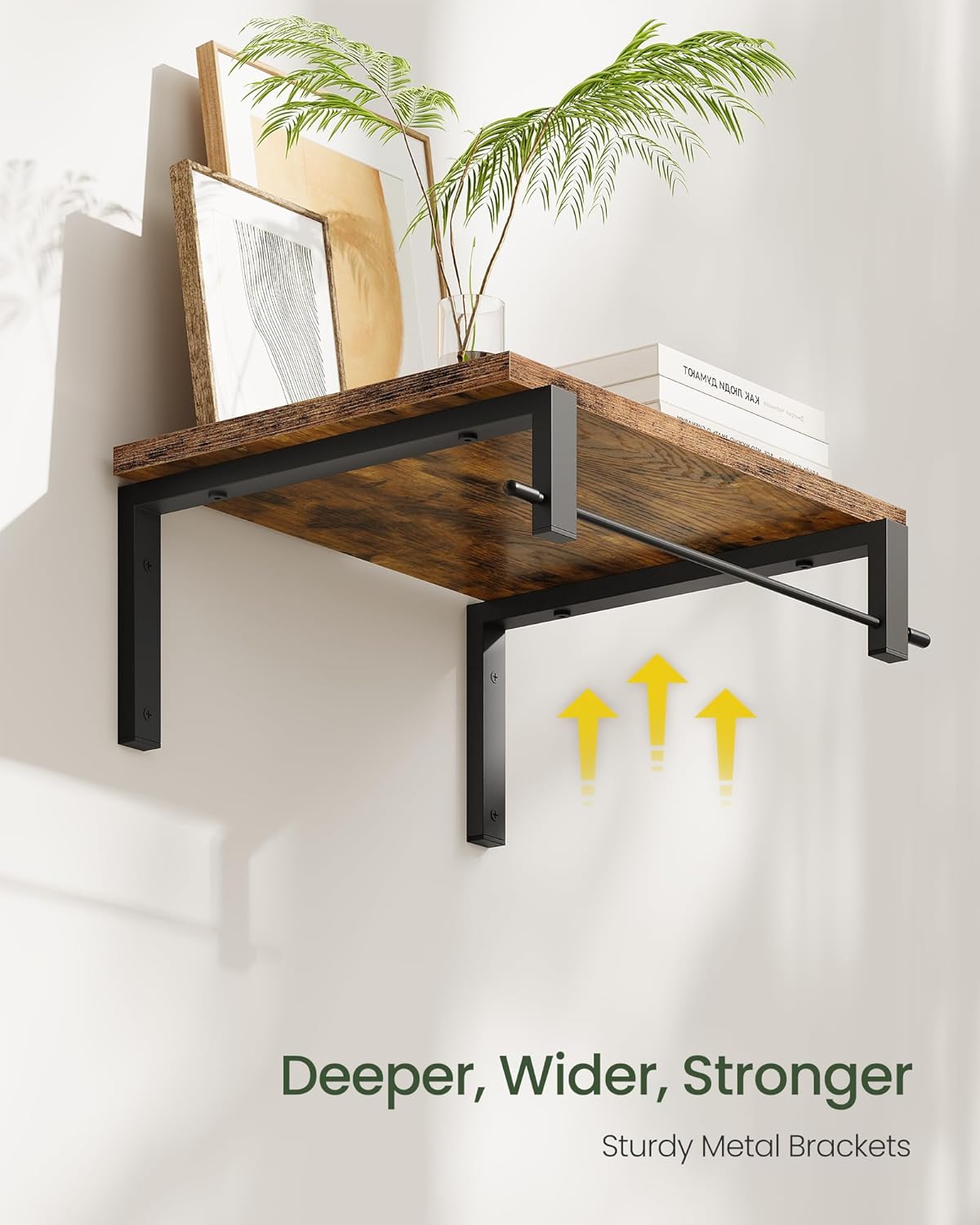 Deep Floating Shelves for Wall, 12 inch Wall Mounted Shelves Set of 2, Wide Floating Shelves for Living Room, Bedroom, Study, Bathroom, Rustic Brown and Black TBJ02P2BF