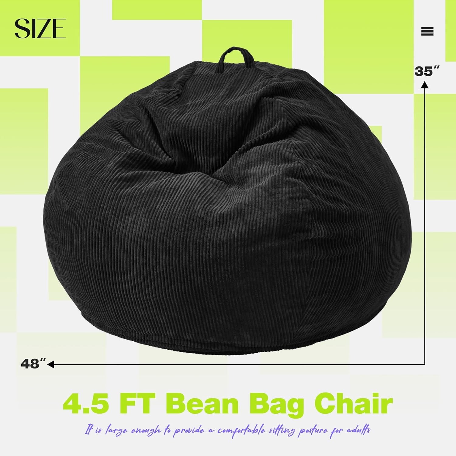 Hobestluk 4.5FT Bean Bag Chair Giant Bean Bag Chair with Filler Included Adult Bean Bag Chairs with Removable Cover for Bedroom Living Room - (Jumbo, Black)