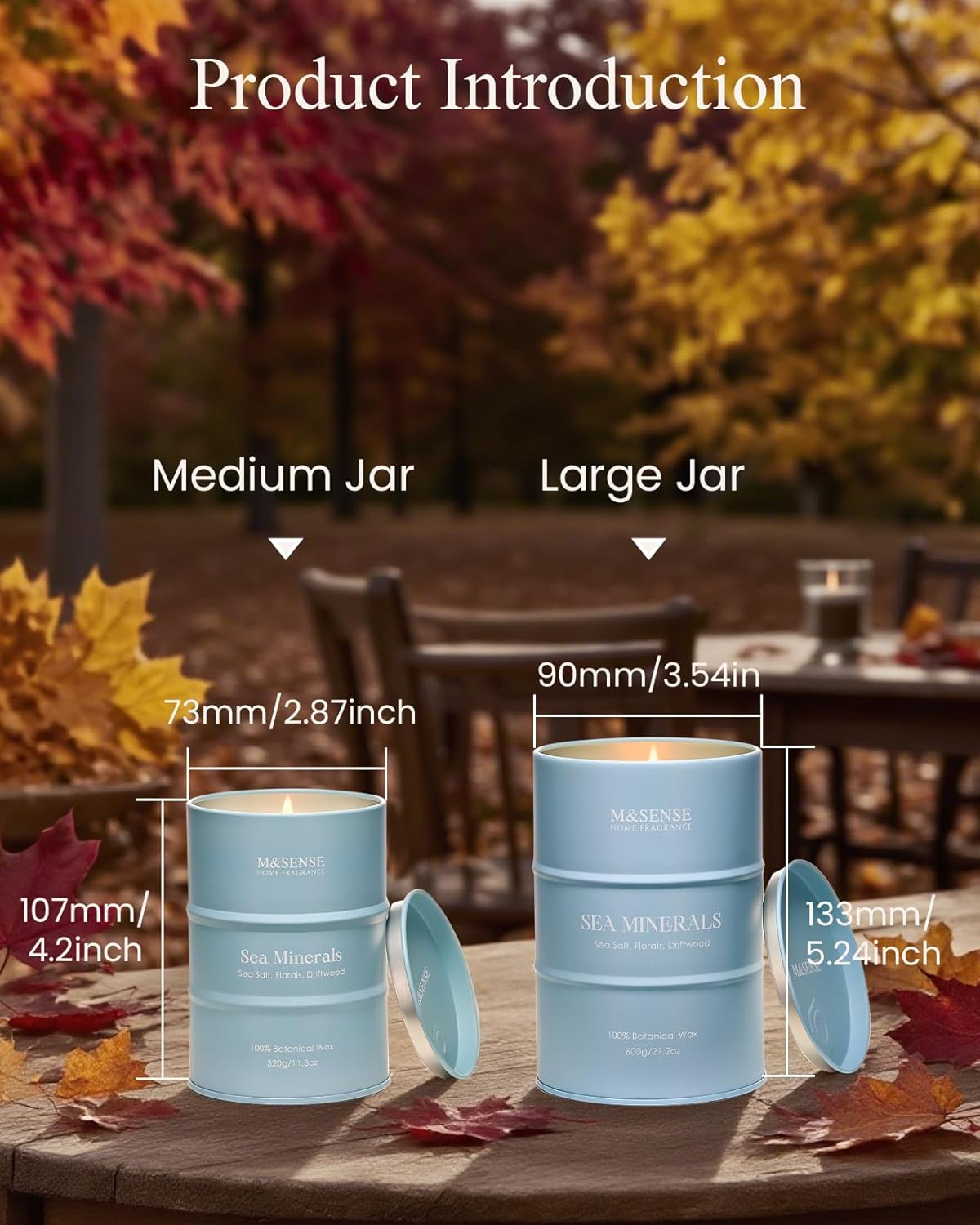 M&SENSE Sea Minerals Scented Candles Ocean, Aromatherapy Summer Candle for Stress Relief Meditation Relaxing, Housewarming Gifts for Women Men, 11.3oz 70 Hour Long Burning