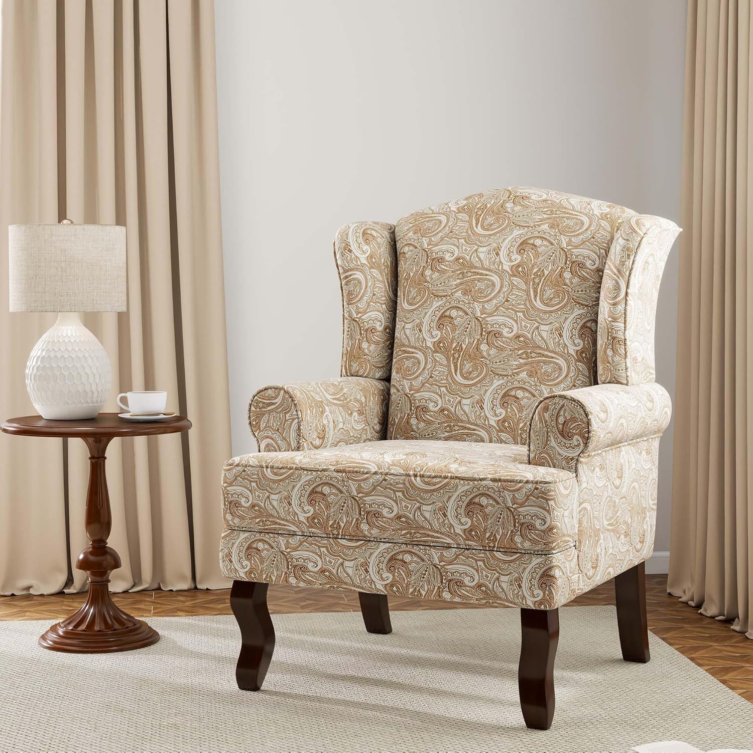 Accent Chair, High Back Upholstered Armchair with High Resilience Sponge & Wood Legs, Mid-Century Modern Comfy Single Sofa Reading Chairs for Living Room, Bedroom (Floral Sand, Set of 1)