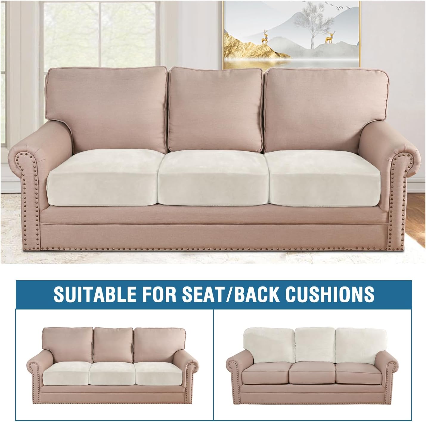 H.VERSAILTEX Velvet Stretch Couch Cushion Cover Plush Cushion Slipcover for Chair Loveseat Sofa Cushion Furniture Protector Seat Cushion Sofa Cover (3 Piece Sofa Cushion Covers, Porcelain)