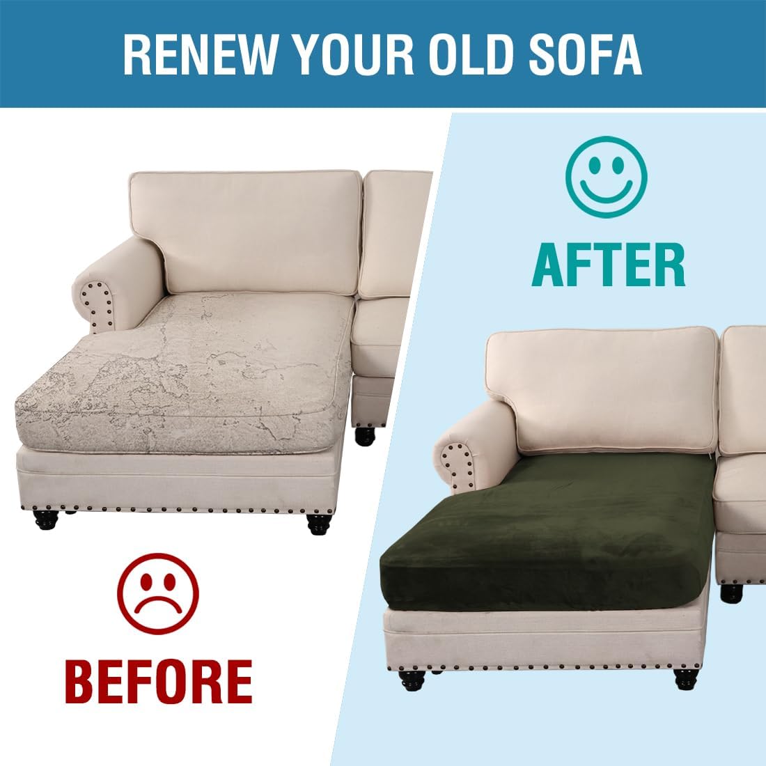H.VERSAILTEX Velvet Stretch Individual Chaise Cover Sectional Couch Covers for L Shaped Sofa Both Left/Right Furniture Protector Seat Cushion Sofa Cover (1 Piece Chaise Cover, Olive)