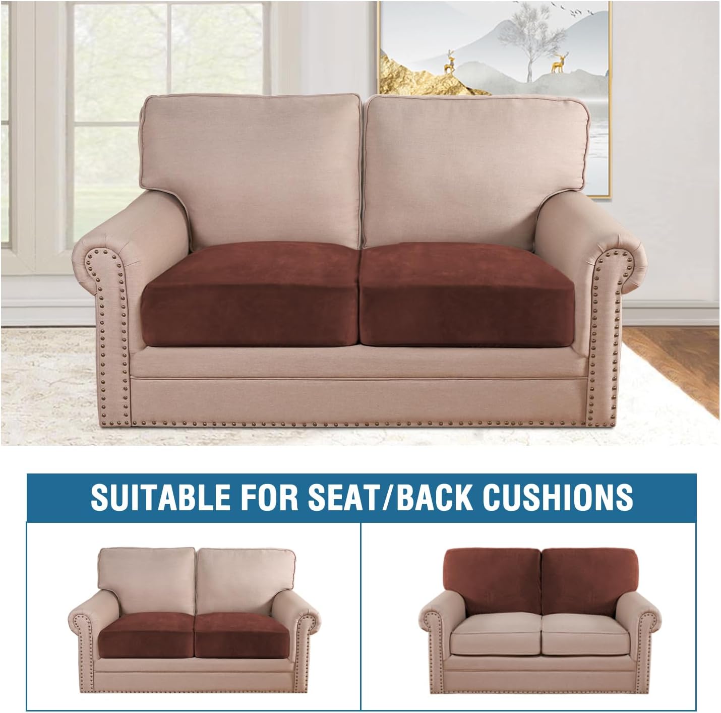 H.VERSAILTEX Velvet Stretch Couch Cushion Cover Plush Cushion Slipcover for Chair Loveseat Sofa Cushion Furniture Protector Seat Cushion Sofa Cover (2 Piece Medium Sofa Cushion Covers, Burnt Brick)