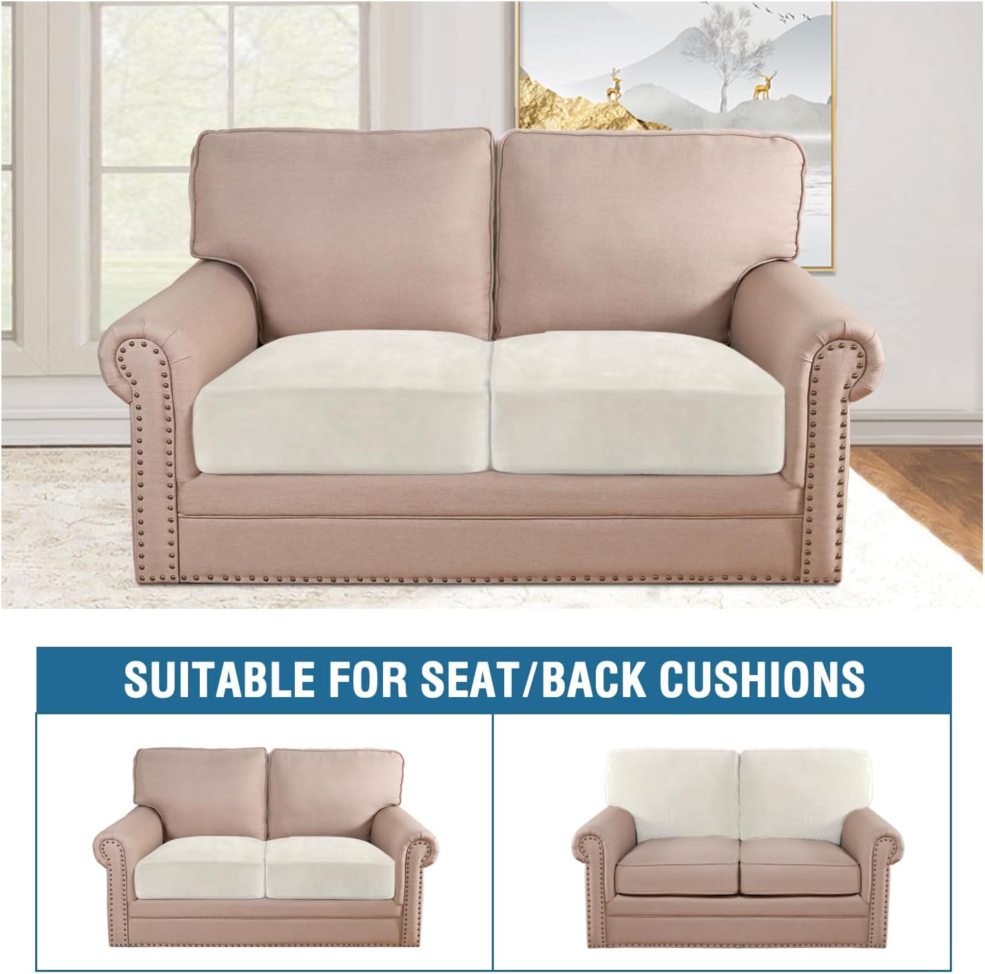 - STAY IN PLACE: Featuring non-skid thick elastic bottom, our cushion slipcover can stay tight with no snag, no wrinkling, shifting or slipping on both leather and cloth sofa. Check the installation guide carefully, it can be finished within 3 minutes by one person. It is very easy to put on and take down. (Installation Instructions Included)