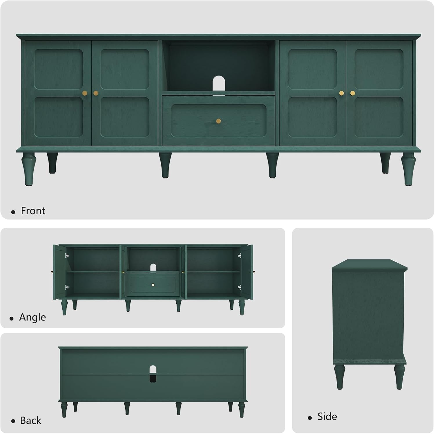 - 【Multiple Uses】: This green TV stand can be used as a Media Entertainment Center and a multifunctional storage cabinet. Its light design with clean lines and gold handles makes it a perfect addition to your living room, or anywhere else.