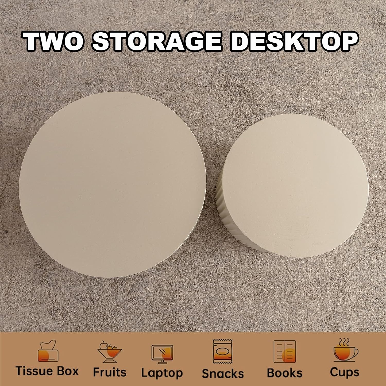 Round Nesting Coffee Table Set of 2, Modern Coffee and End Table Set Small Circle Wooden Drum Side Table Accent End Tables for Living Room Office, No Assembly,Cream Large