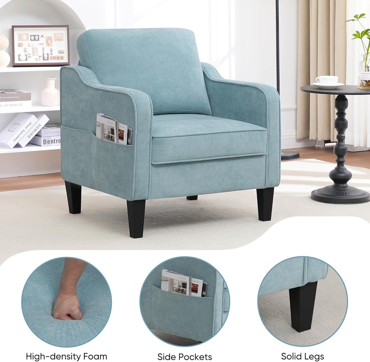 - 【Comfortable Seating】The 5.7" thick seat of this living room chair are padded with high-density foam for superior comfort. The armchair with 115° seating angle offers enhanced support, reduces lumbar fatigue and ensures a comfortable seating experience. The armrests are perfectly aligned with your arms, providing your hands with plenty of support for long hours of reading, resting or relaxing.