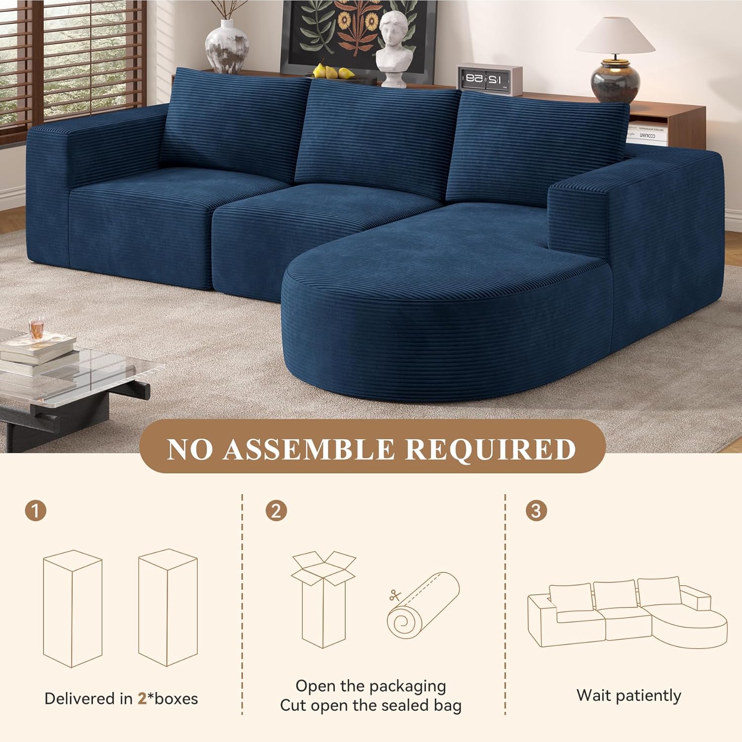 Modular Sectional Sofa with L-Shape Chaise,Cloud Sectional Modern Sleeper Couch with Deep Seat,Sponge Compression Sofas No Assembly Required(Blue-Corduroy Fabric) 1PCS