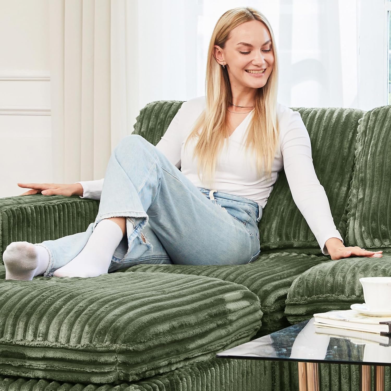 - Luxurious Corduroy: Upholstered in plush wide-rib corduroy, Belffin modular cloud sectional sofa is soft, skin-friendly, and stylish. As one of today’s trendiest materials, plush corduroy adds cozy texture and softness—while being easy to maintain and pet-friendly.