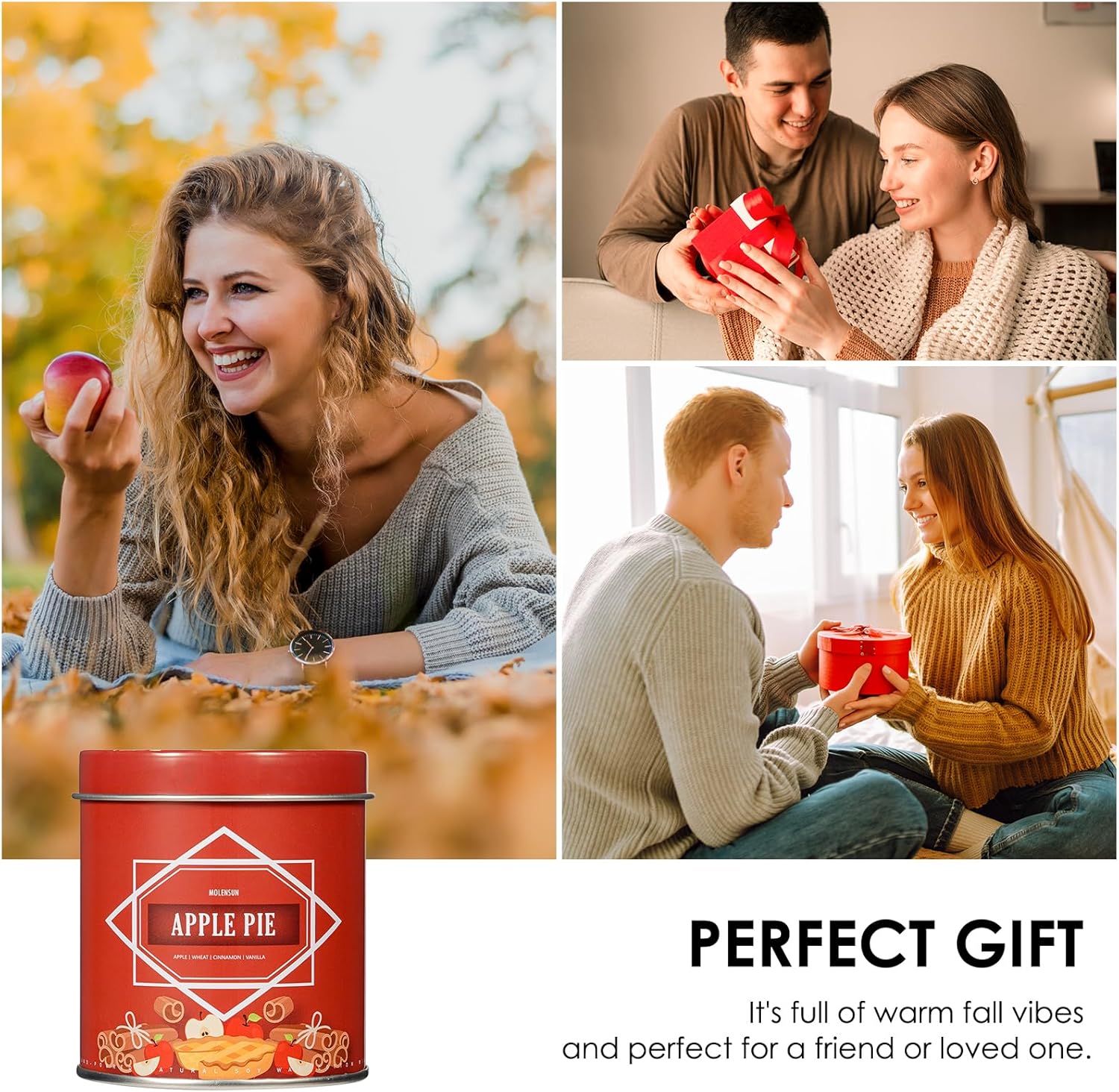 - Fresh Baked Apple Pie: Savor the scent of baked apples, brown sugar, cinnamon, and buttery crust. This apple pie candle fills your space with the aroma of a cozy fall kitchen, creating a nostalgic and inviting ambiance all season long