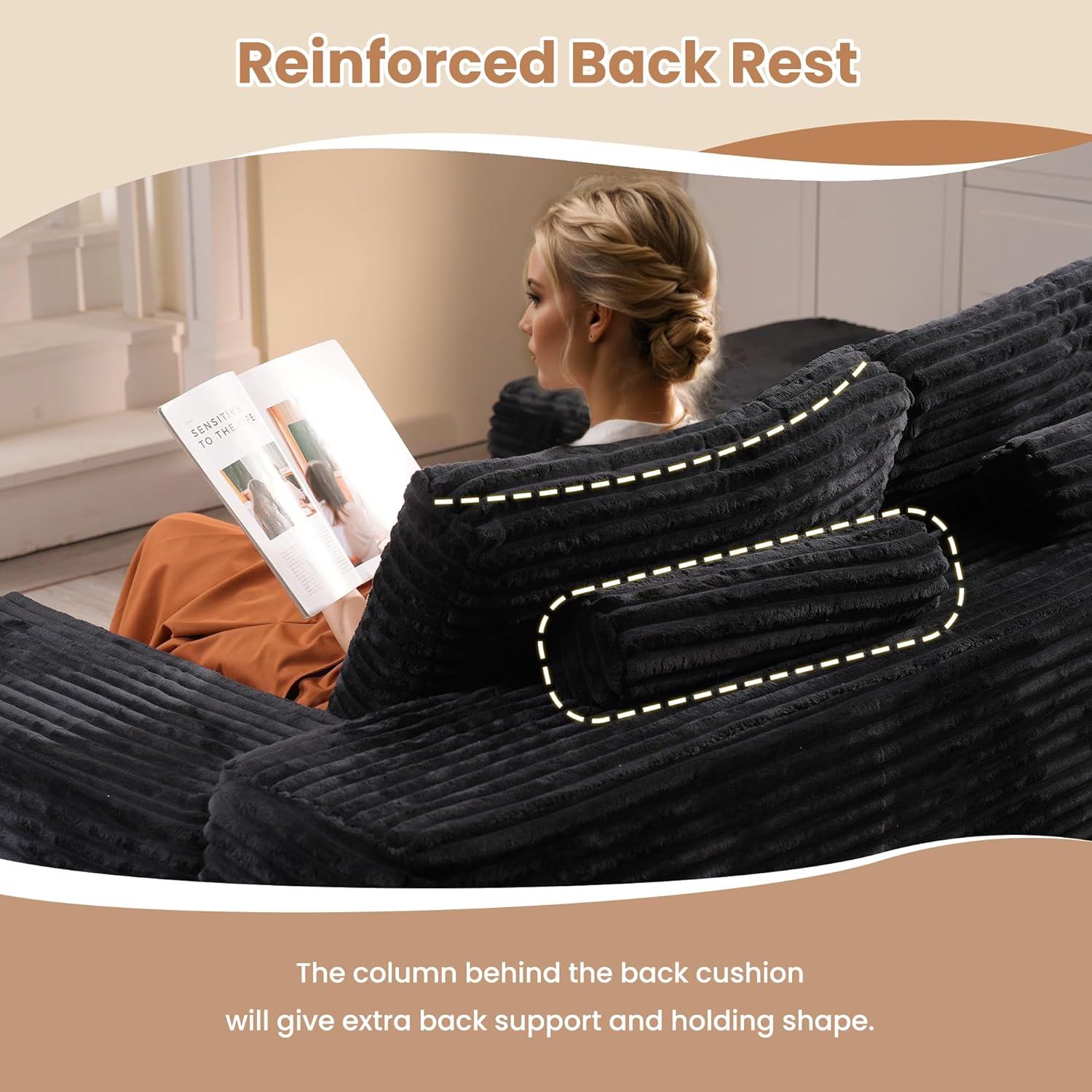 HOOOWOOO Cloud Sectional Couches for Living Room,Modular Sectional Sofa No Assembly,136X70 Inch Plush Corduroy Large U Shape Floor Couch Set with Deep Seat(Black)
