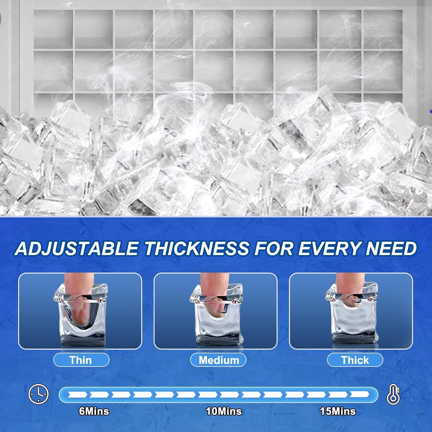 - Multi-Functional Intelligent LCD Control Panel - Manage all functions effortlessly via the LCD panel. Features include a 24-hour reservation, automatic self-cleaning, de-icing, built-in blue light, and malfunction indicators. Adjust ice-making time with the (+) or (-) buttons to customize ice size for any occasion.