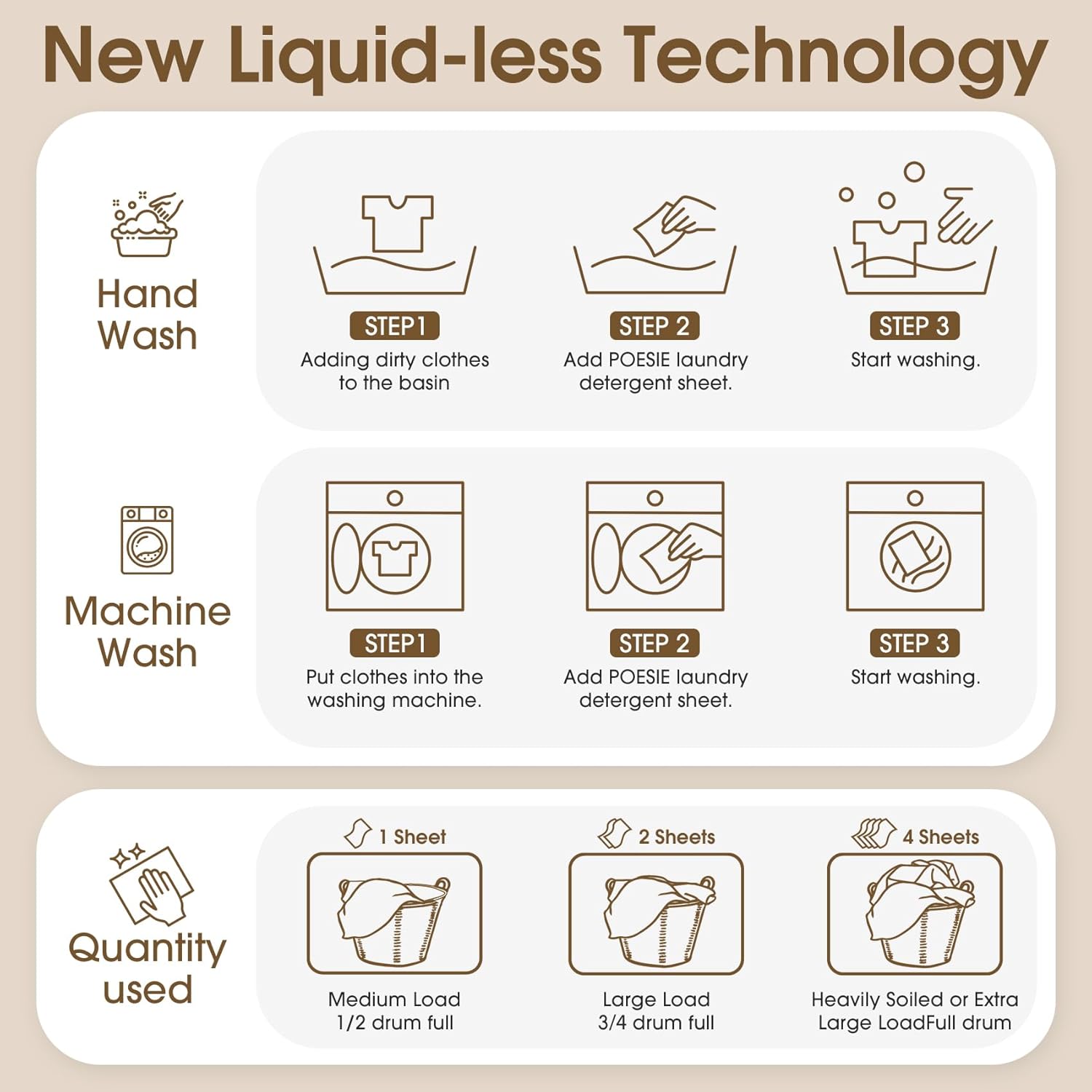 - Easy to Use - Liquidless detergent sheets, 1 sheet for small or medium loads where clothes are not very dirty, 2 sheets for large loads and 4 sheets for extra large loads, no waste. Not too little and not too much to save resources