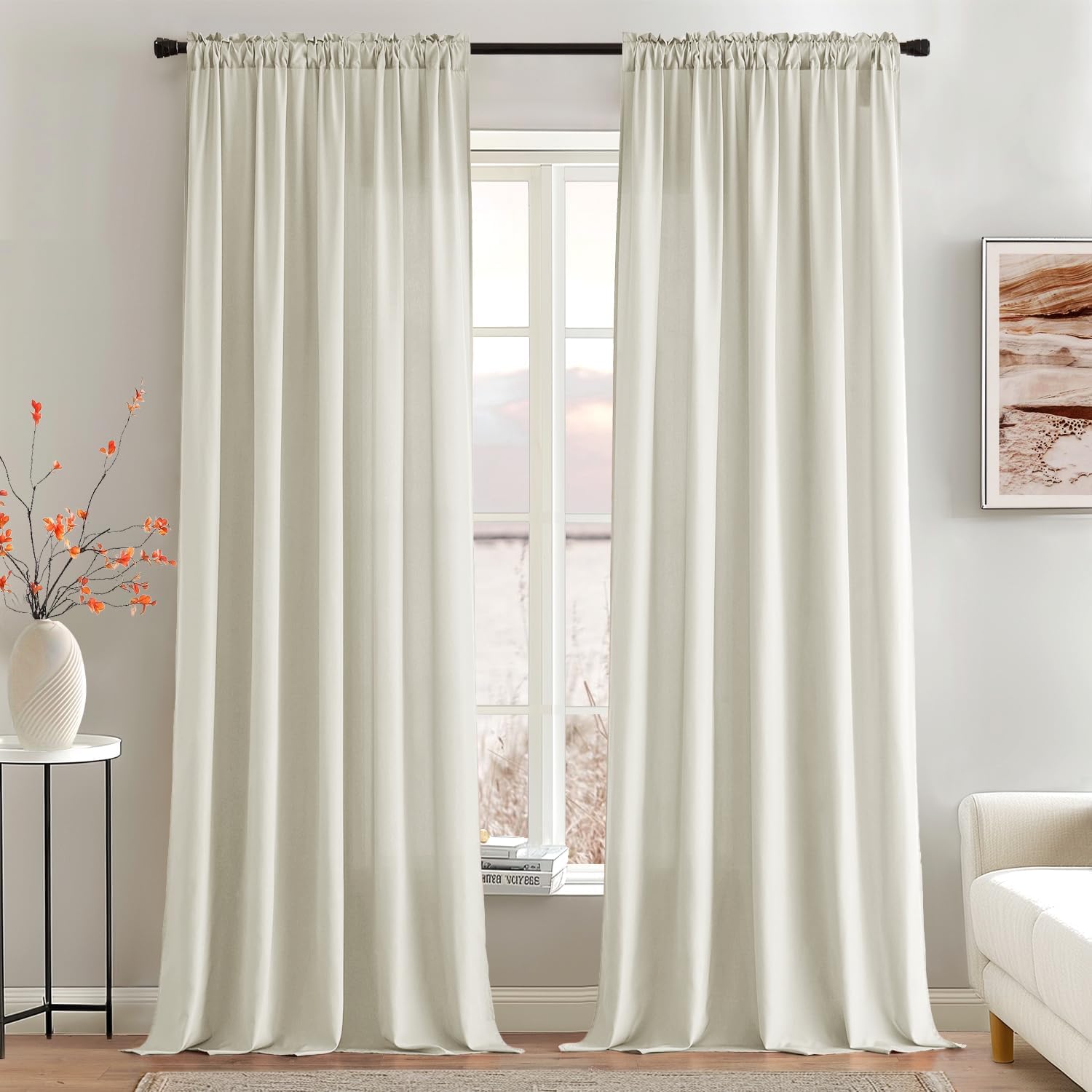 MIULEE Ivory Privacy Sheer Curtains That Let Light in 96 Inches Long Non-See-Through Semi Sheer Curtain Light Filtering Window Curtains Drapes for Living Room Bedroom 2 Panels Set 42 X 96
