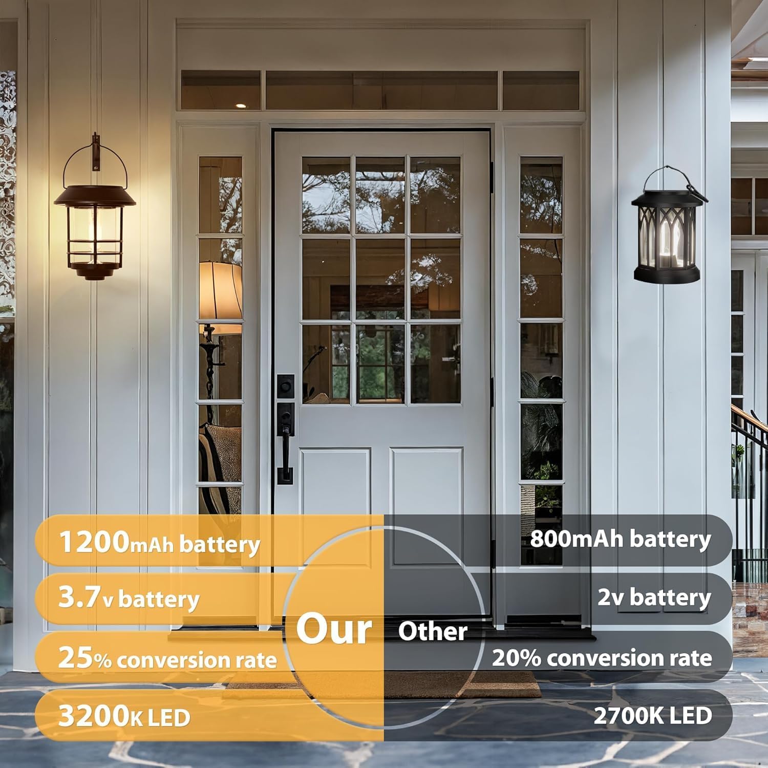 Otdair Solar Lanterns Outdoor Waterproof 2 Pack, Auto On/Off Hanging Solar Lights for Outside with Wall Mount, Glass Outdoor Lighting Outdoor Decorative for Wall, Front Porch, Yard, Garden, Fence
