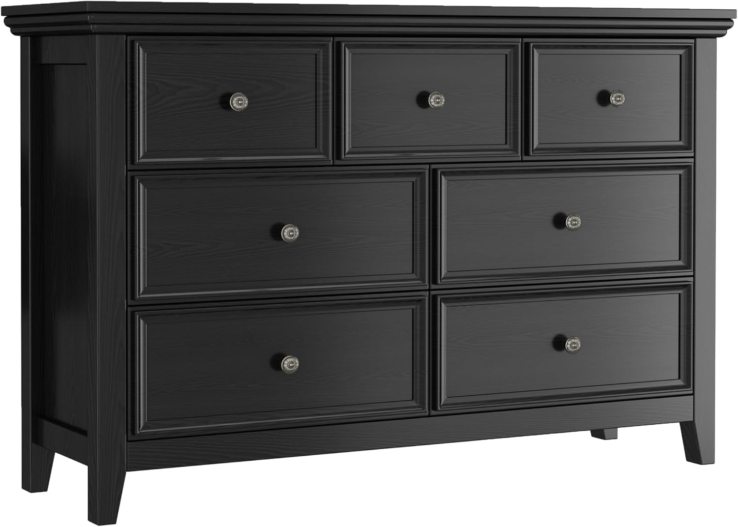 BLANKSPACE Black Dresser, Modern Dresser for Bedroom, 7 Chest Drawer Nightstand, Large Capacity Wood Cabinet for Bedroom, Living Room, Closets